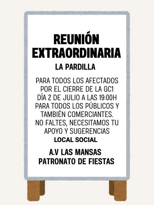 Imagen de archivo de las primeras protestas en La Pardilla (Foto: TA)La Asociación de Vecinos Las Mansas y el Patronato de Fiestas de La Pardilla han convocado para este miércoles a las 19.00 horas en su local social una reunión extraordinaria dirigida a vecinos y comerciantes afectados por el cierre de la autopista GC-1.