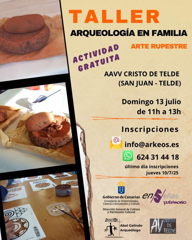 El arqueólogo teldense Abel Galindo imparte este fin de semana dos talleres gratuitos de arqueología en familia. El sábado 12 de julio, en la Asociación de Vecinos Punto y Seguido de La Garita. Y el domingo día 13, en la Asociación de Vecinos Cristo de Telde, en San Juan.