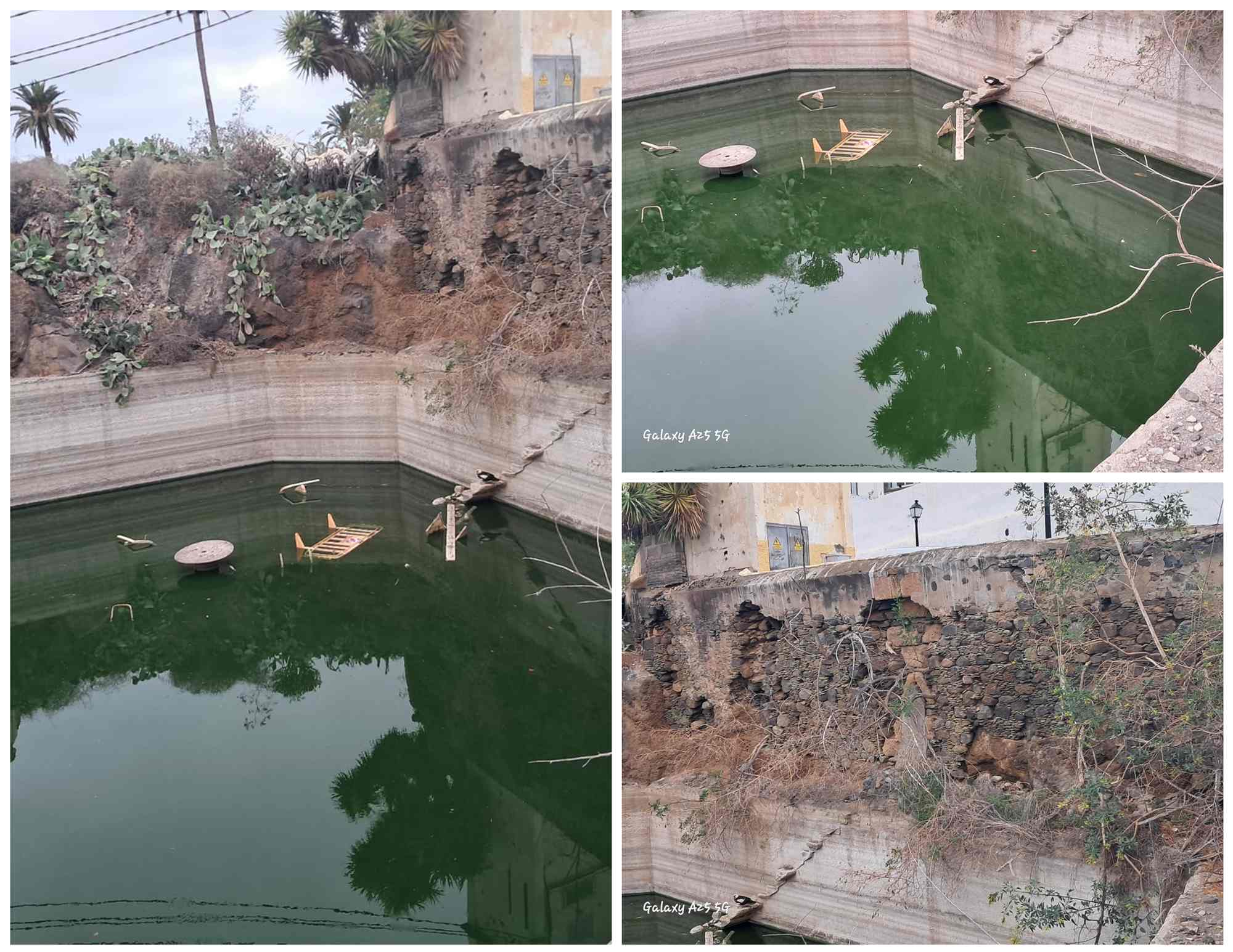 El antiguo estanque de la calle de Inés Chimida, en San Francisco (Telde), ha pasado de ser un espacio con fauna viva a convertirse en un vertedero improvisado, según denuncian los vecinos, que ya trasladaron esta queja hace meses sin obtener respuesta. Actualmente, solo queda una pata y algunas tortugas de los animales que solían habitar el estanque, mientras en el agua flotan vallas de obra, una mesa y restos de basura.