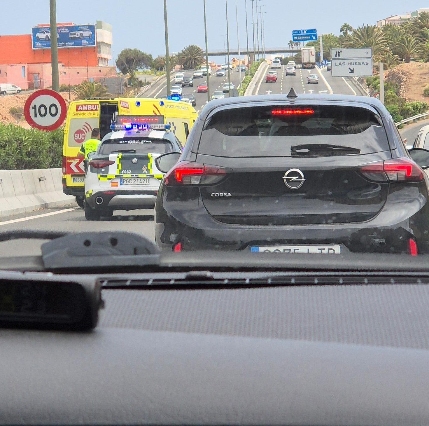 Los servicios de emergencia han actuado en la tarde de este viernes en respuesta a un accidente de tráfico en la GC-1 a su paso por Telde. Concretamente, a la altura de Las Huesas y en dirección sur.