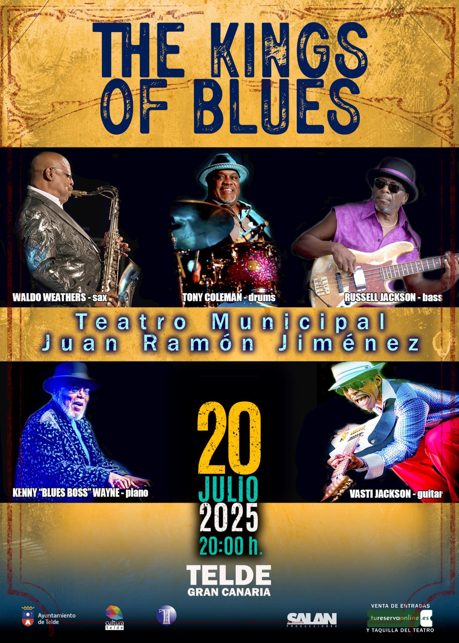 La primera de las dos citas será el domingo 20 de julio a las 20.00 horas en el propio Teatro Juan Ramón Jiménez, donde actuará The Kings of Blues, una super banda integrada por auténticas leyendas del blues y el funk internacional: