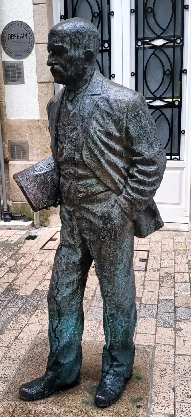 Salimos de esta plaza por la calle del Progreso para encontrarnos con la segunda estatua en bronce, de tamaño natural, que representa a un egregio lucense pionero en el mundo del periodismo impreso, don José de Cora.