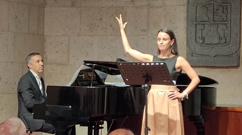 Un brillante concierto con un público que ovacionó cada una de las composiciones que Tania Lorenzo e Ignacio Clemente fueron desarrollando con una maestría y dominio que a lo largo de la hora de duración dejaron su huella artística y profesionalidad demostrada por ambas carreras de intensos currículos y reconocimientos nacionales e internacionales. En presencia del ex presidente de la Sociedad Filarmónica de Gran Canaria, Pedro Schlueter, dedican un bis, Les Chemins de l’amour, obra del compositor francés, Jean Marcel Poulenc (París, 1899-1963). Una memorable velada de los Conciertos de la Academia que en el corazón de la emblemática y patrimonial Vegueta los acordes pianísticos de Ignacio Clemente y voz soprano de Tania Lorenzo dejaron una exquisita huella artística y conocimiento de la obra musical francesa de compositores y compositoras mencionados del siglo XIX y XX. Enhorabuena a los intérpretes y organización. Gracias.