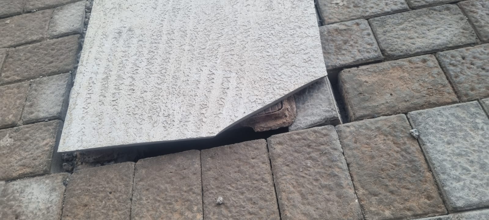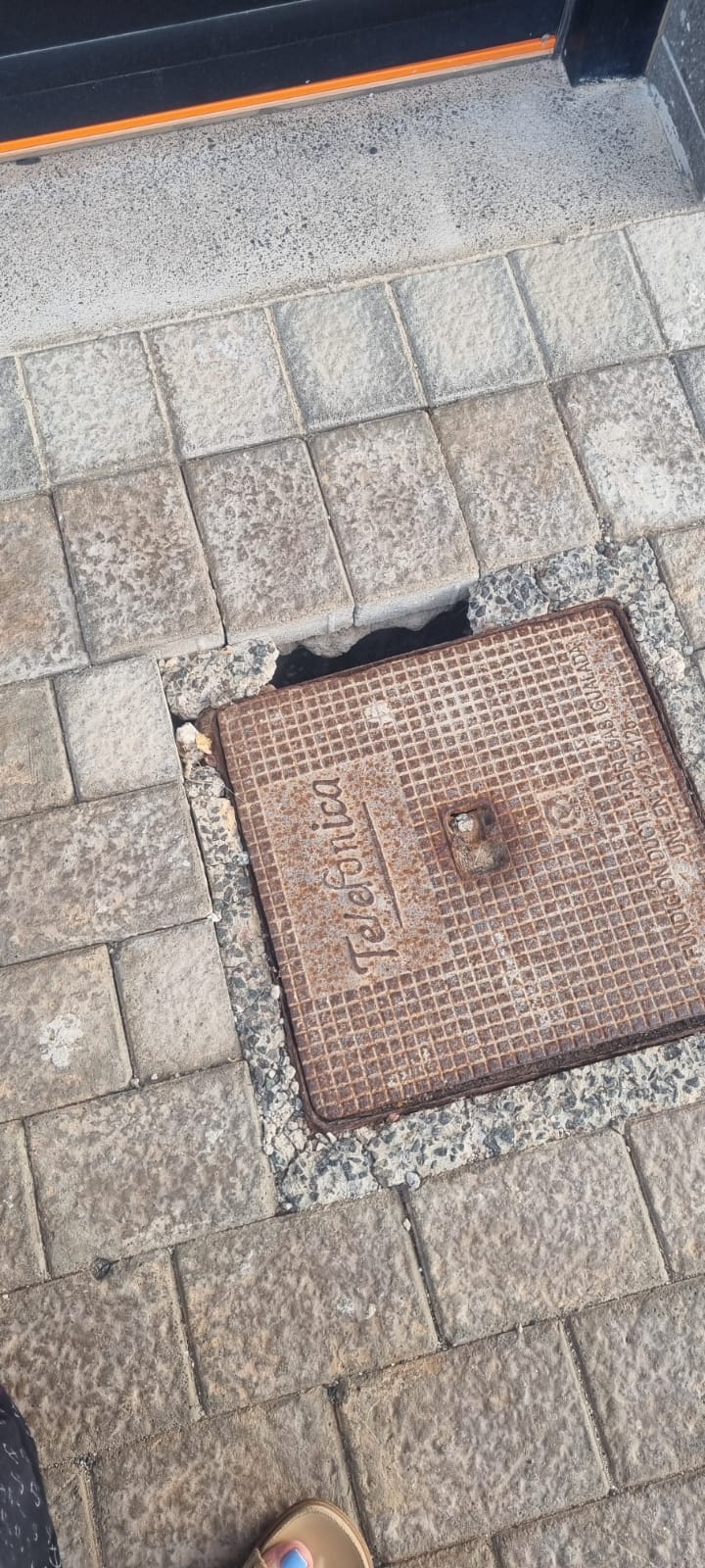 Desde el pasado 25 de junio, explica, ha contactado por varias vías con el Ayuntamiento de Telde, en particular con las concejalías de Urbanismo y Vías y Obras, y también con Telefónica, pero hasta la fecha, asegura, "la única solución ha sido colocar una loseta rota mal encajada, sin señalización adecuada".