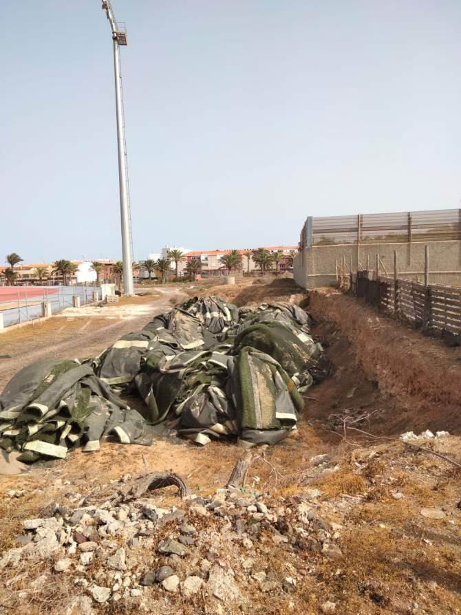 Usuarios del estadio municipal de atletismo y béisbol de El Hornillo, en Telde, han denunciado públicamente el vertido incontrolado de restos de césped artificial procedente de las obras de renovación en los campos de fútbol de San José de Las Longueras y El Calero.