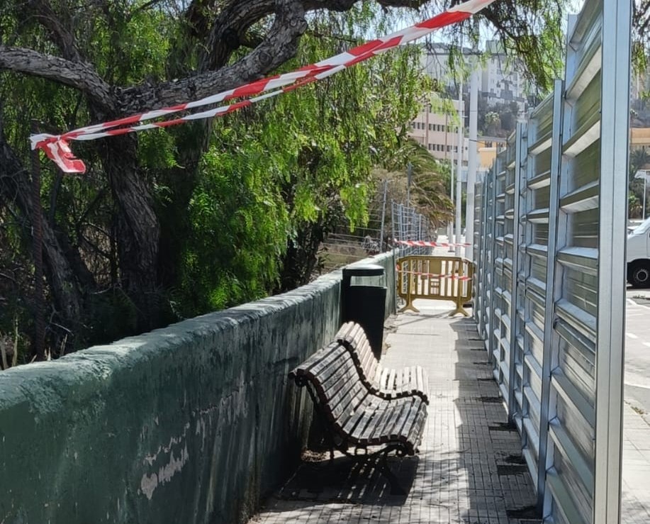 Los trabajadores que están construyendo las nuevas viviendas de Jinámar han colocado unas vallas justo delante del banquito de madera. Como el mueble se halla anclado al suelo, no han podido trasladarlo. "Esta mañana llamé al Ayuntamiento dos veces. Me dijeron que sí, que ellos mandaban a la policía, pero nada...", asegura uno de los afectados.