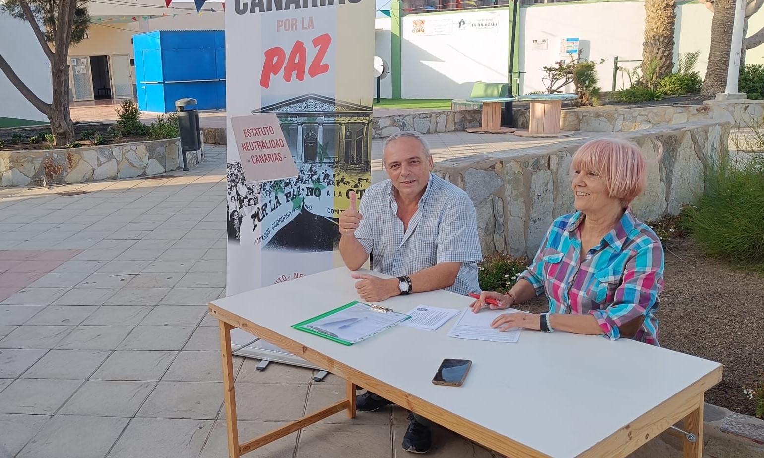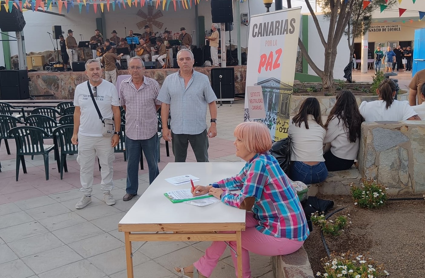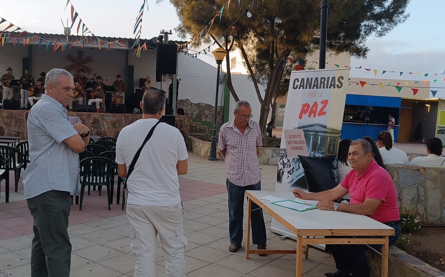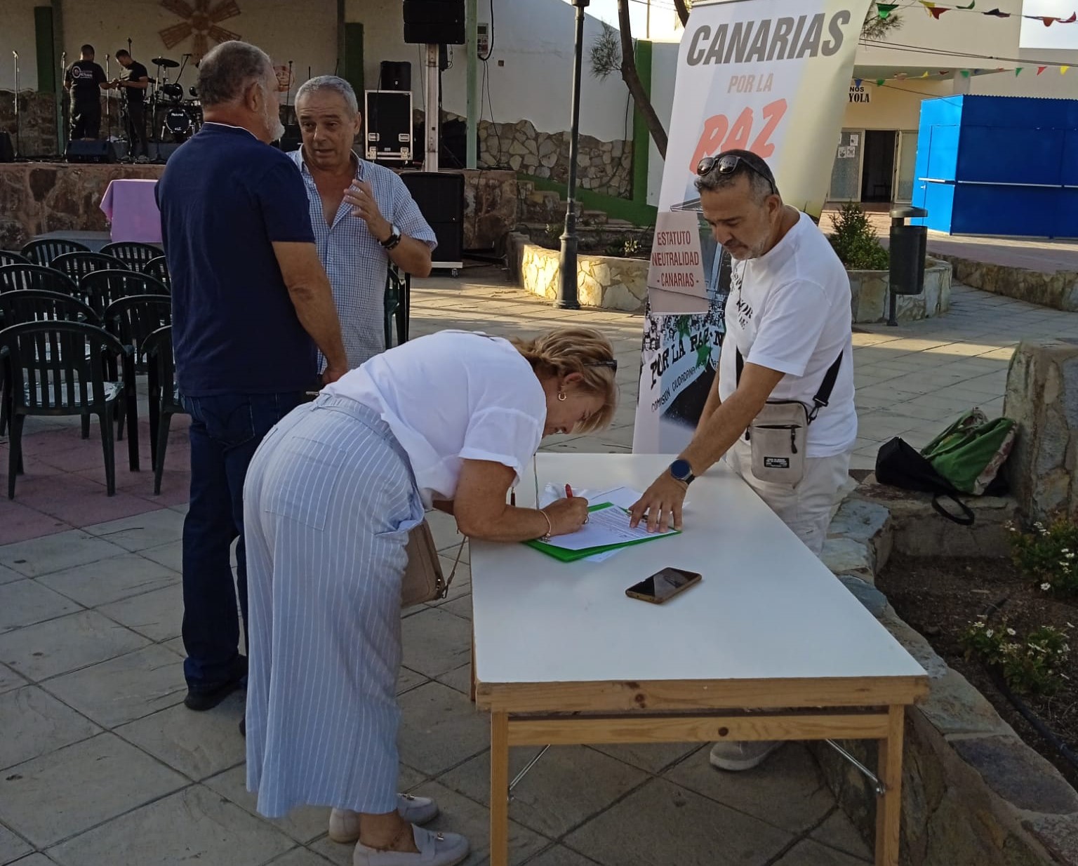 Coincidiendo con el pregón de las Fiestas Patronales de La Majadilla, celebrado en la tarde de este viernes 25 de julio, el comité local de Telde de la plataforma Canarias Por La Paz llevó a cabo una acción de recogida de firmas en la plaza del barrio. El objetivo fue recabar apoyos ciudadanos al Estatuto de Neutralidad de Canarias, una propuesta que busca consolidar el carácter neutral y pacifista del Archipiélago en el contexto internacional.