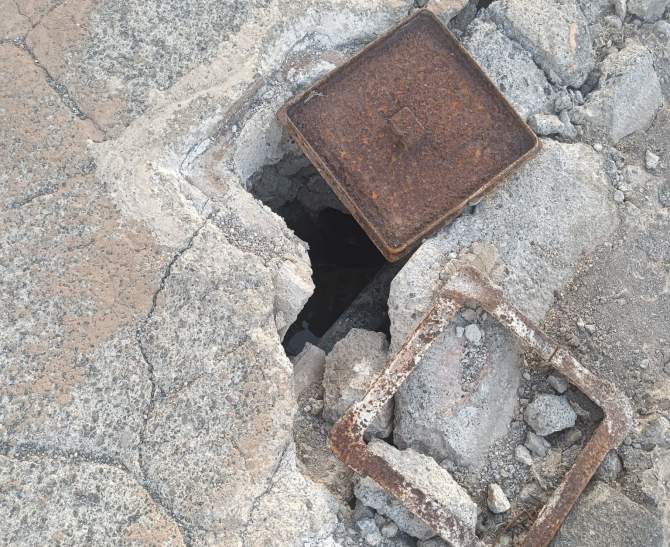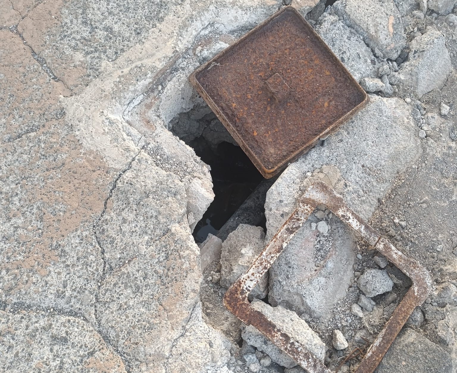 Vecinos de Playa del Hombre, en Telde, han denunciado este domingo la existencia de una arqueta rota en la calle Félix Alvó, una de las vías de este barrio costero, que representa un peligro evidente para peatones y vehículos.
