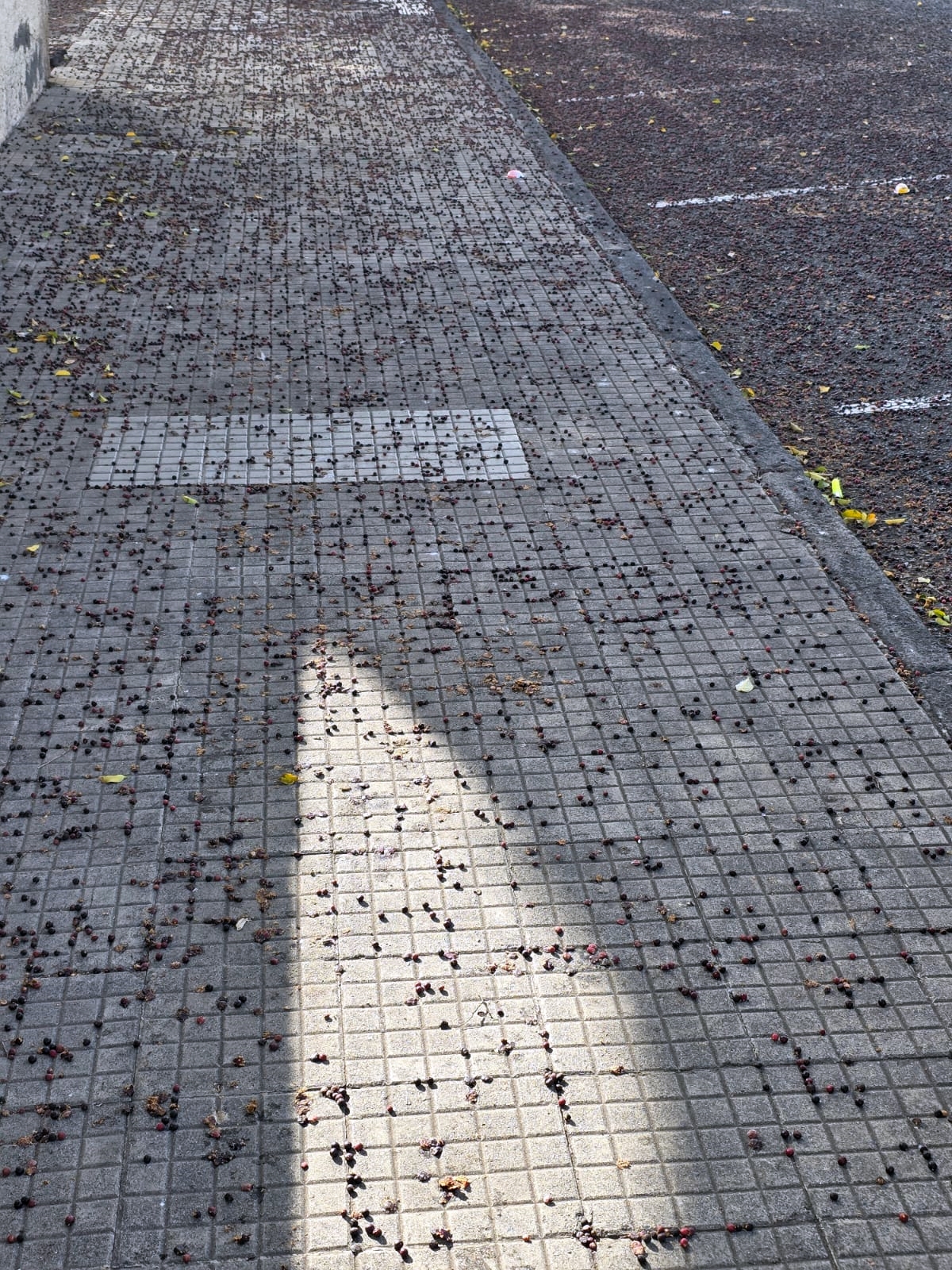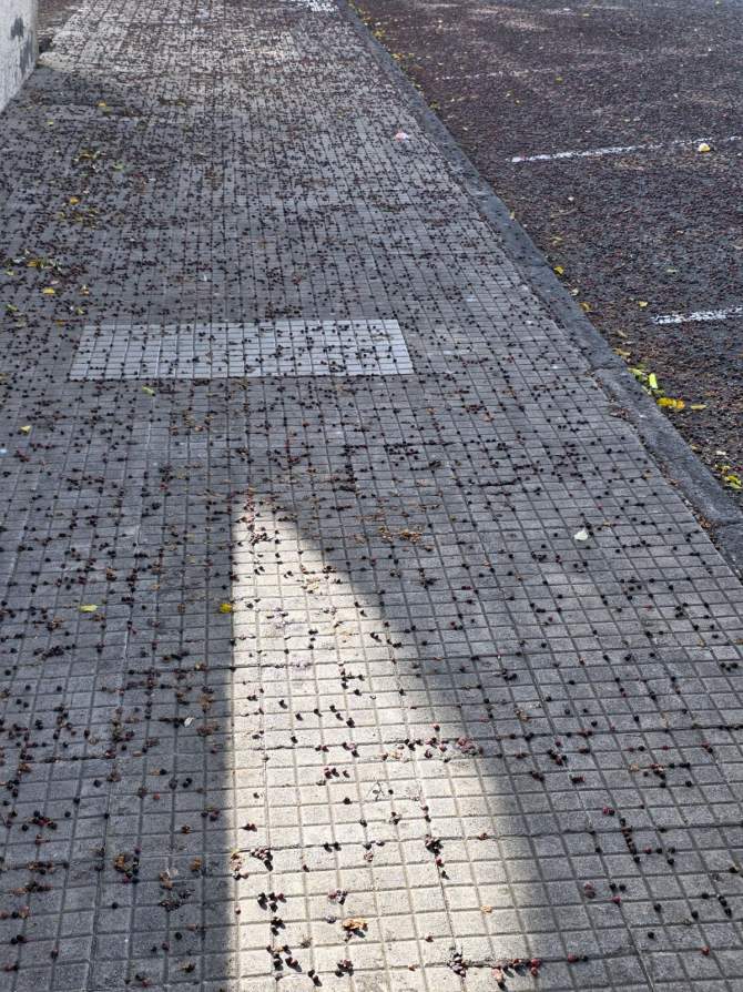Ejemplo del estado de la acera en la calle de Jinámar (Foto cedida)Vecinos de Eucaliptos II, en Jinámar, han trasladado públicamente su malestar por la acumulación de restos orgánicos en las aceras y la falta de limpieza en el entorno. Las imágenes remitidas muestran frutos y hojas esparcidos por el pavimento, lo que dificulta el tránsito peatonal y genera sensación de abandono.