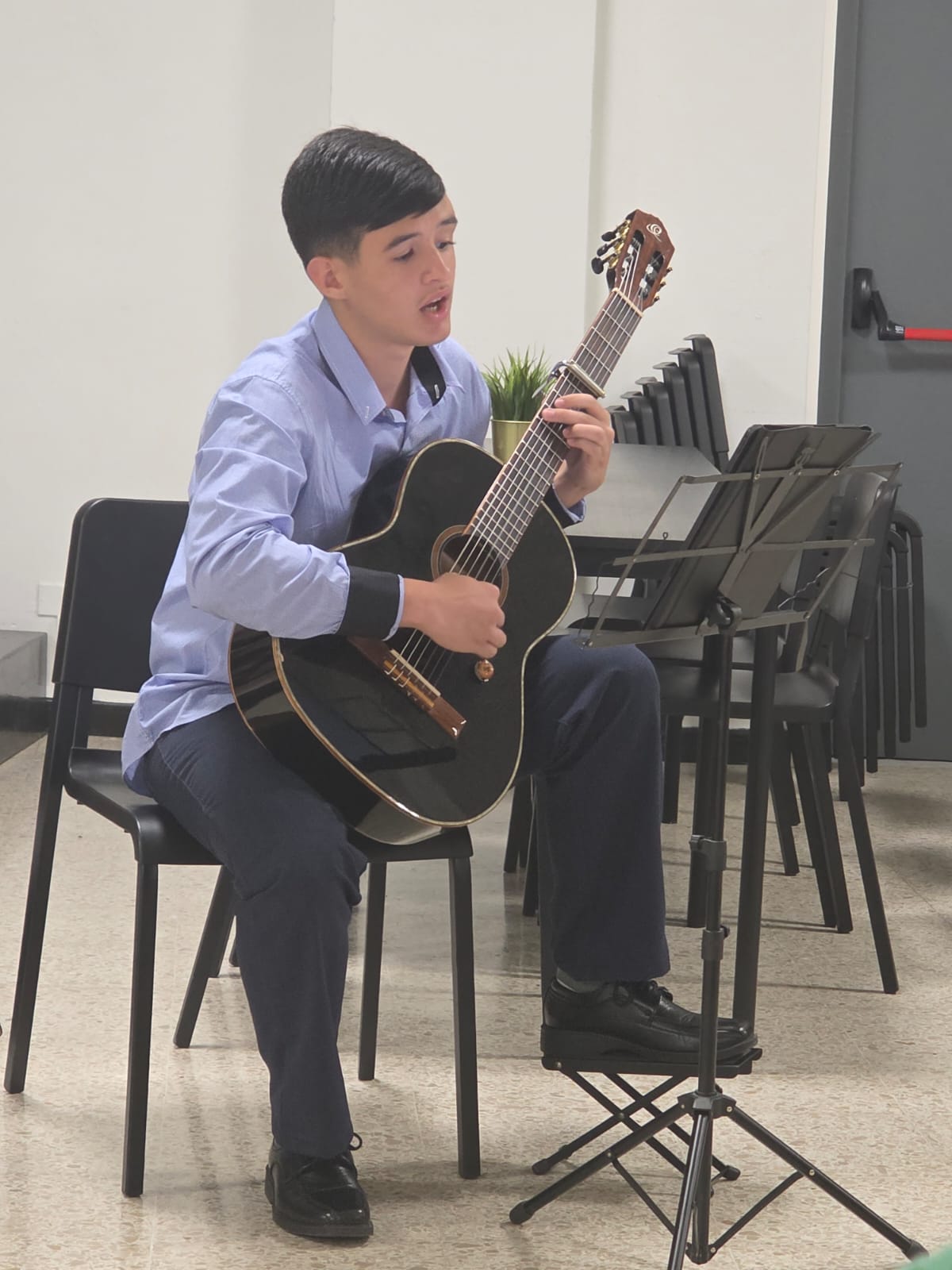 Y estuvo amenizado por el joven César Fleitas a la guitarra, quien con un toque magistral supo ganarse al público por su talento y su exquisita maestría del instrumento.