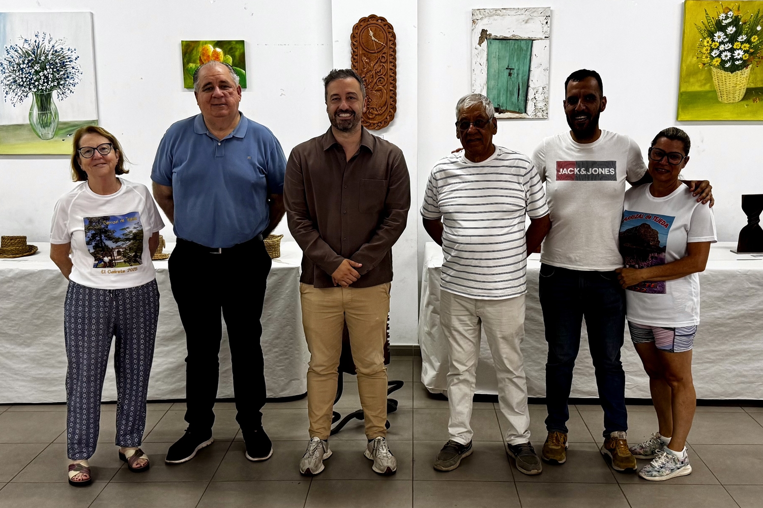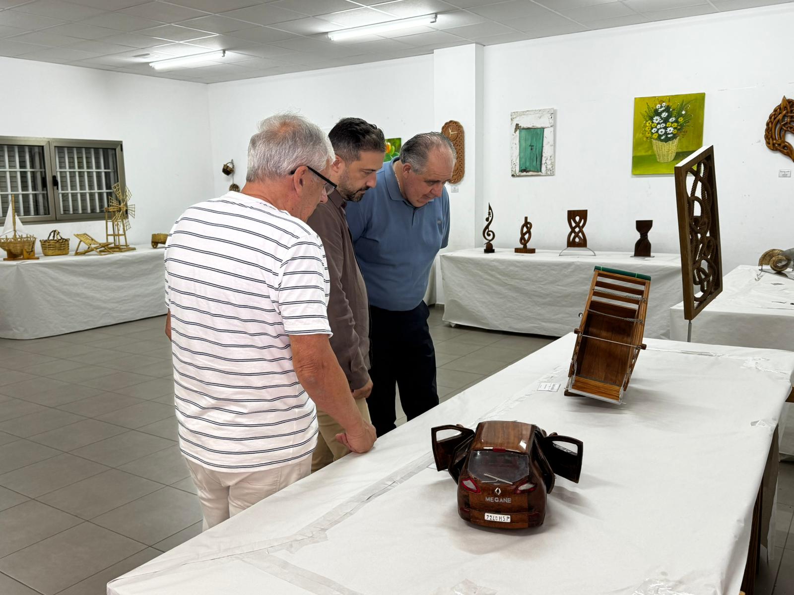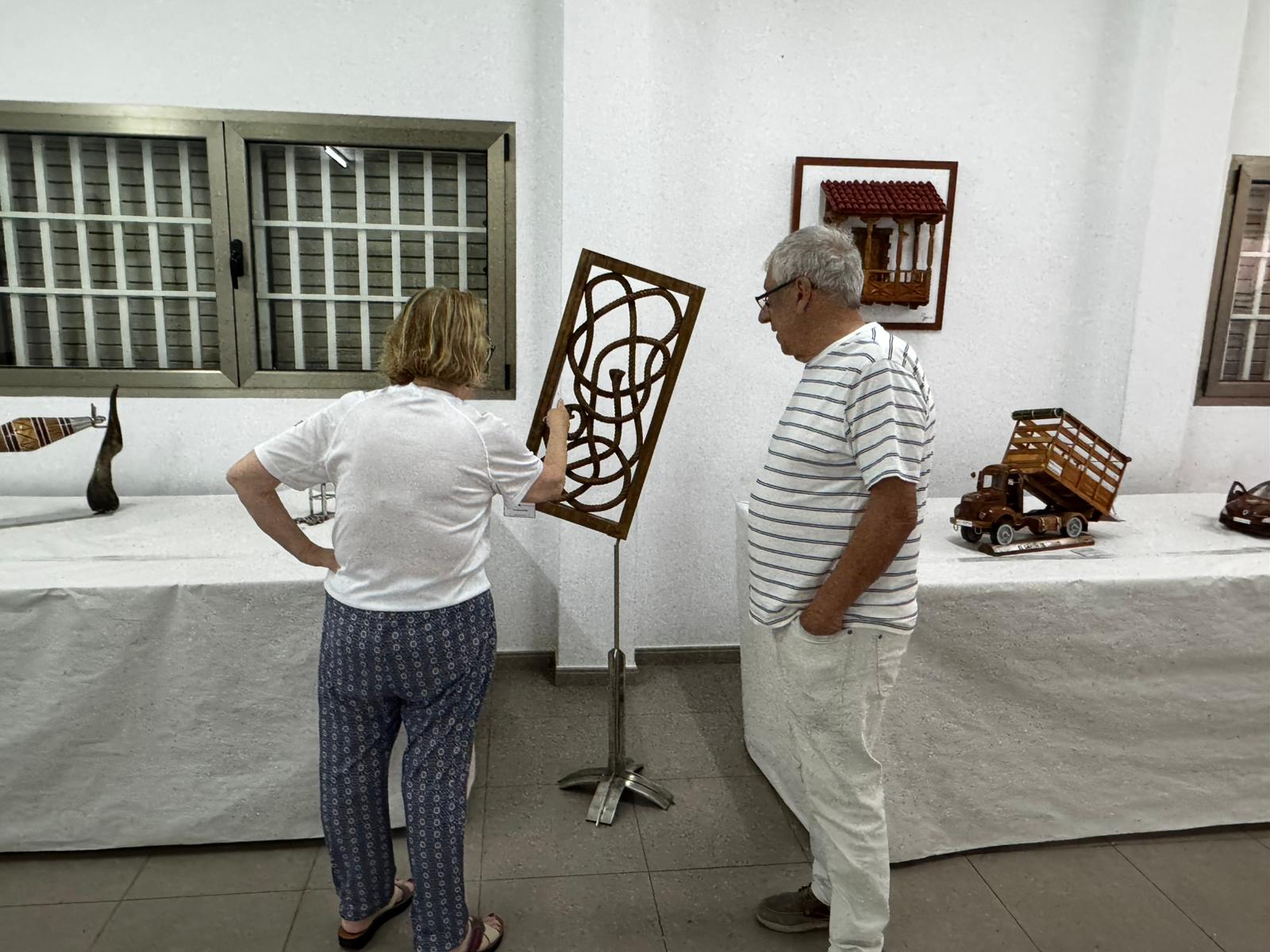 Durante la visita, los representantes municipales acudieron a la exposición del artesano local Sergio Rodríguez Pulido, vecino del barrio, quien presenta una variada muestra de sus trabajos artesanales en diferentes modalidades. La exposición, organizada en el marco de las fiestas del barrio, pone en valor el talento y la dedicación de este creador autodidacta.