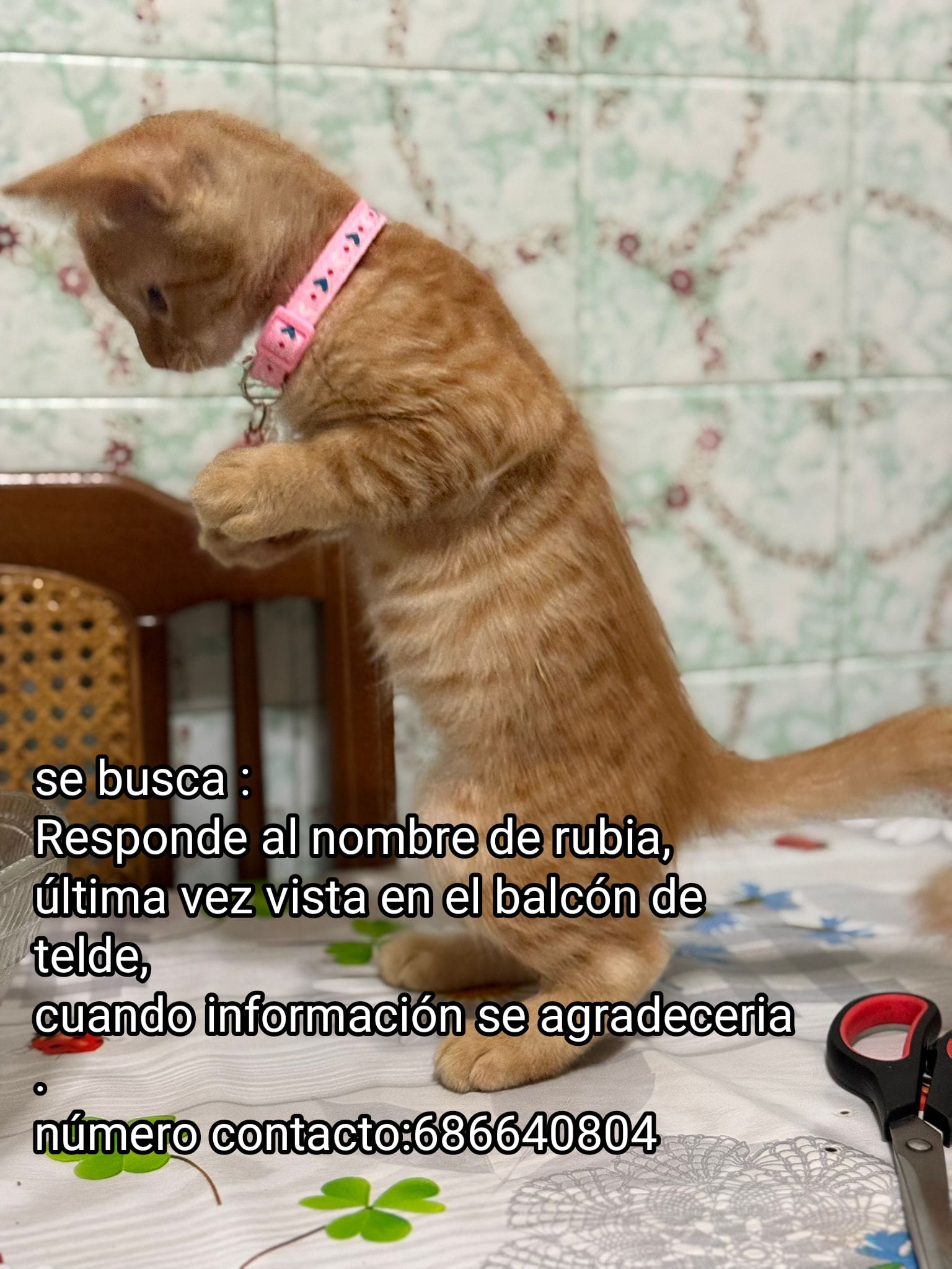 Vecinos del barrio de El Balcón de Telde buscan desesperadamente a Rubia, una gata que desapareció recientemente y de la que no se tienen noticias desde hace varios días. La última vez que fue vista fue precisamente en esta zona residencial del municipio teldense.
