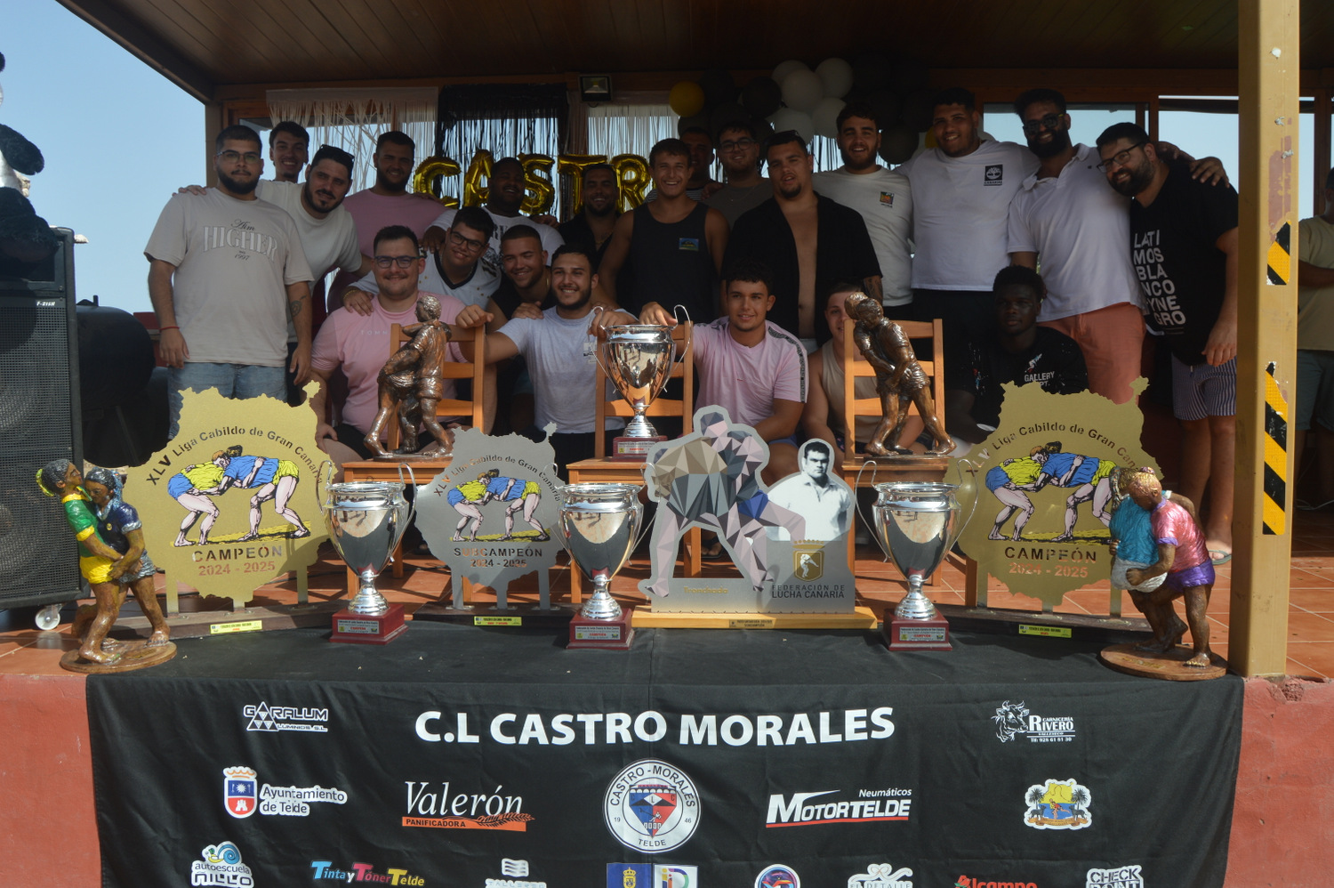 Pepe Marrero, histórico luchador del Castro Morales e impulsor de una Casa de la Lucha Canaria en Telde, intervino durante el acto para felicitar al presidente Jaime Rivero por su labor al frente del club. En un discurso breve pero cargado de significado, destacó que para dirigir al Castro Morales “hay que querer, hay que poder y hay que saber”, y deseó que el proyecto continúe creciendo con la misma unidad y compromiso que en la última temporada.
