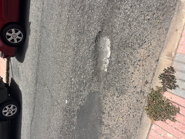 Que vaya a la calle Fernando Rodríguez para que veas bache en la calle Cánovas del castillo queda hasta vergüenza que sea que le eche hormigón para que los goji no se estropee que yo también pago impuestos