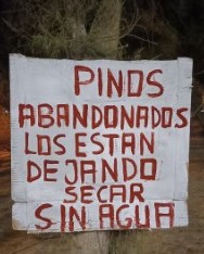 Para más inri, paseando estos días me encuentro y se encontrarán ustedes con el letrero que encabeza este artículo: “PINOS ABANDONADOS. LOS ESTÁN DEJANDO SECAR. SIN AGUA”. ¡No doy crédito a lo que estoy leyendo!, Al parecer, la falta de riego y mantenimiento de los pinos marítimos de Melenara pone en riesgo el bosquete de árboles que ha costado tantos años desarrollar y mantener. El bosquete convertido en el único lugar con sombra natural en todo el litoral de Telde donde la ciudadanía puede celebrar encuentros familiares y de amigos en un ambiente relajante, agradable y sano.