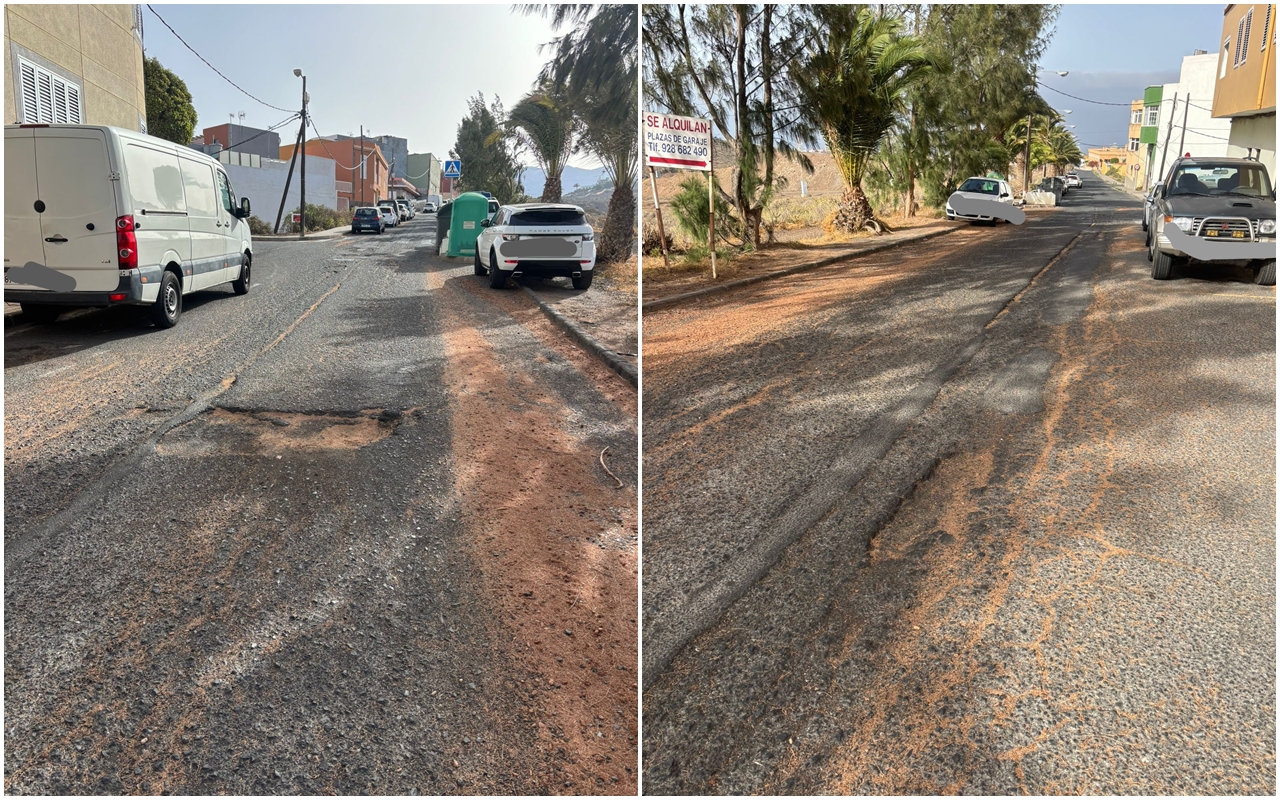 En un recorrido por la vía se observan tramos con hundimientos y zonas donde la capa de rodadura se encuentra muy desgastada. En algunos puntos, el asfalto presenta levantamientos y parches antiguos que han vuelto a deteriorarse.