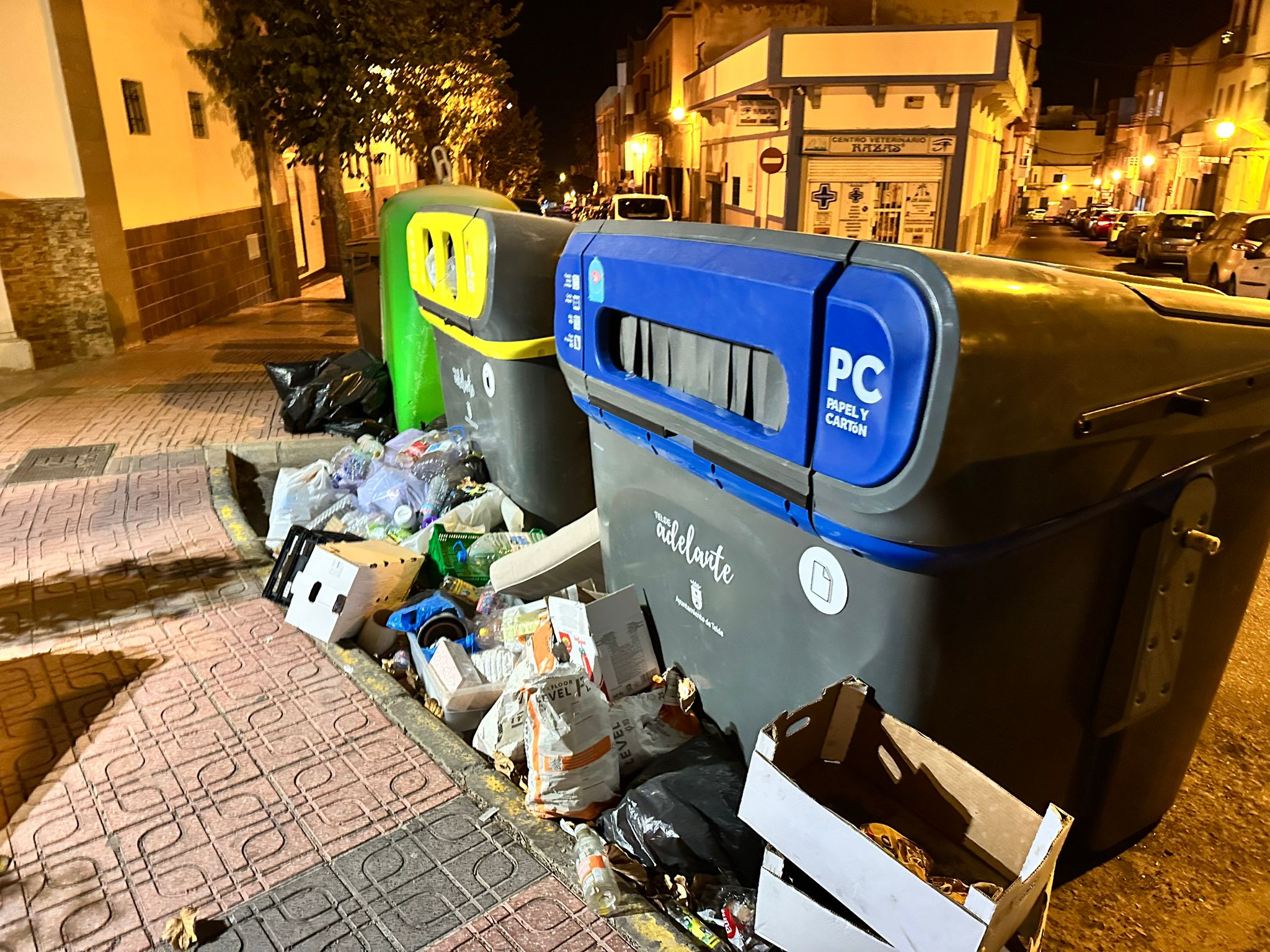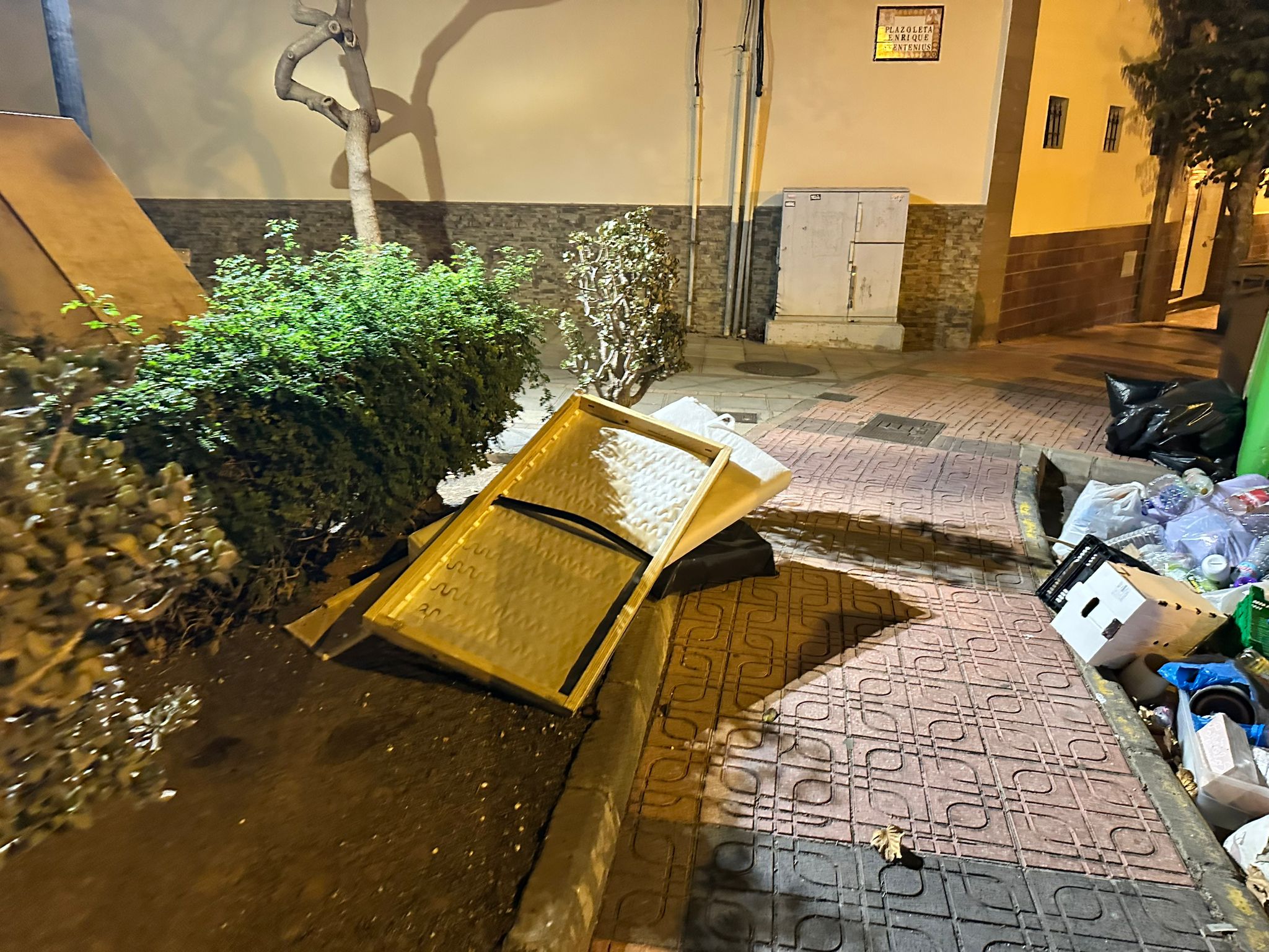 Las imágenes tomadas anoche en la zona por lectores de este periódico digital muestran contenedores de papel y vidrio completamente rodeados de desperdicios, bolsas rotas y cajas esparcidas por la acera, obligando incluso a los peatones a sortear montones de residuos para caminar. A pocos metros, viejas maderas, planchas y hasta un colchón completan la estampa de abandono.