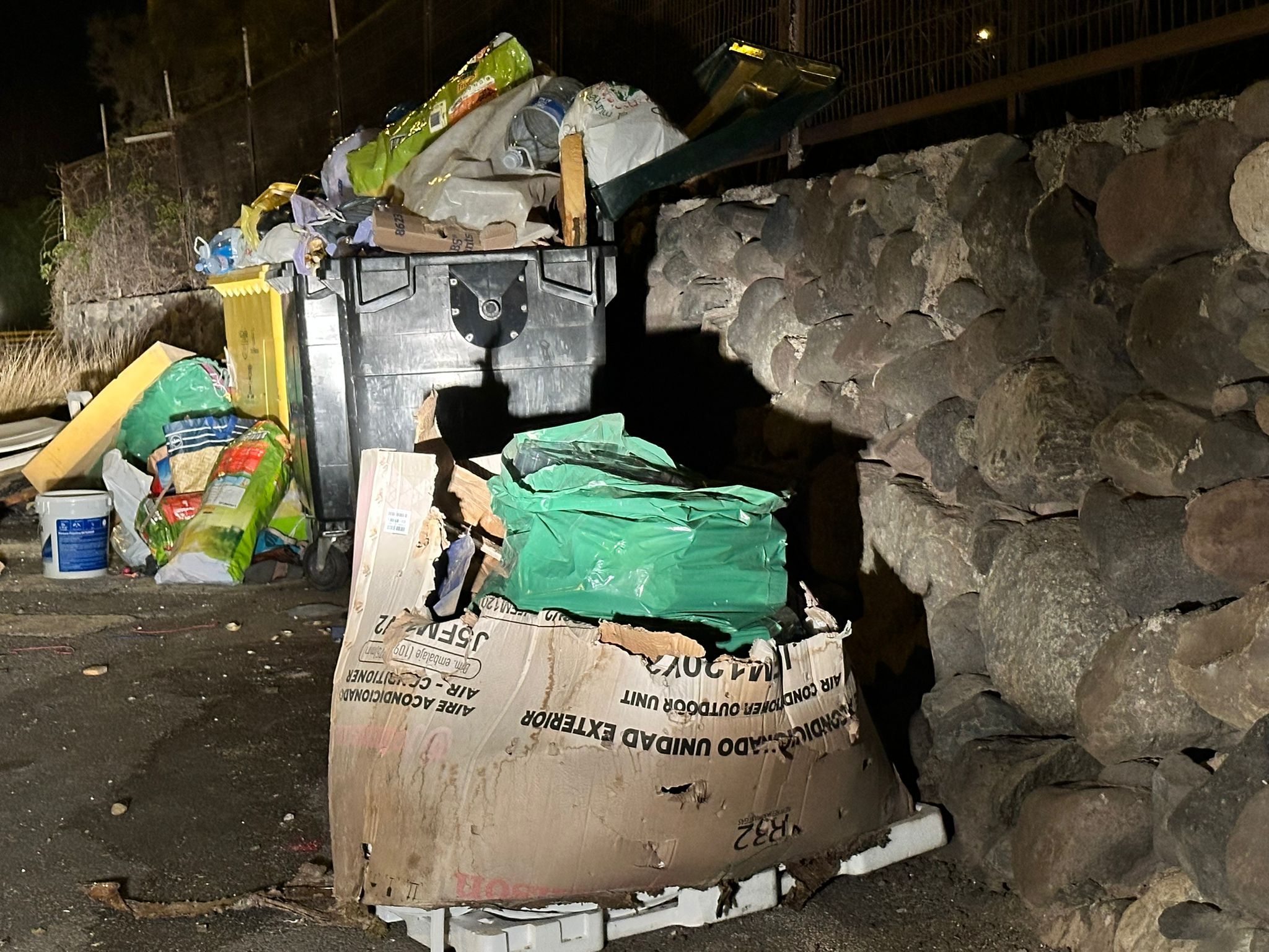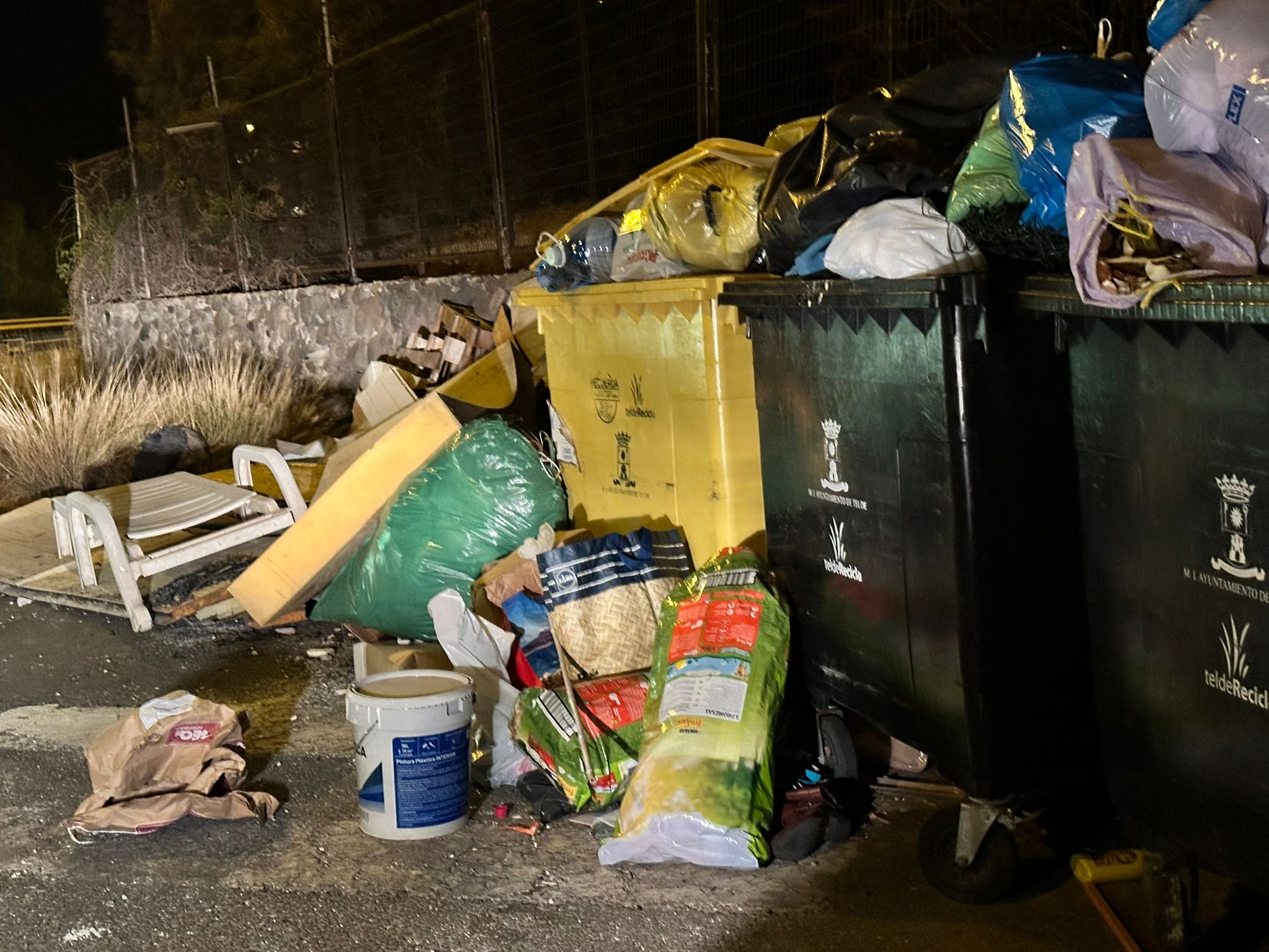 La postal nocturna del centro urbano de Telde está muy lejos de la imagen que el municipio quiere proyectar como ciudad abierta al turismo y al comercio. En la calle, a pocos metros de establecimientos y viviendas, los contenedores aparecen rodeados de basura, cartones, colchones, maderas y todo tipo de enseres abandonados. Un panorama que, según denuncian los vecinos, se repite semana tras semana sin que se vea una solución definitiva.