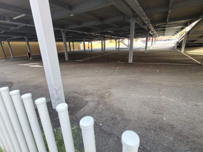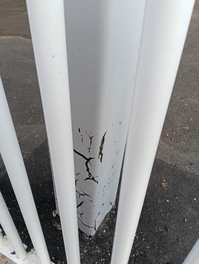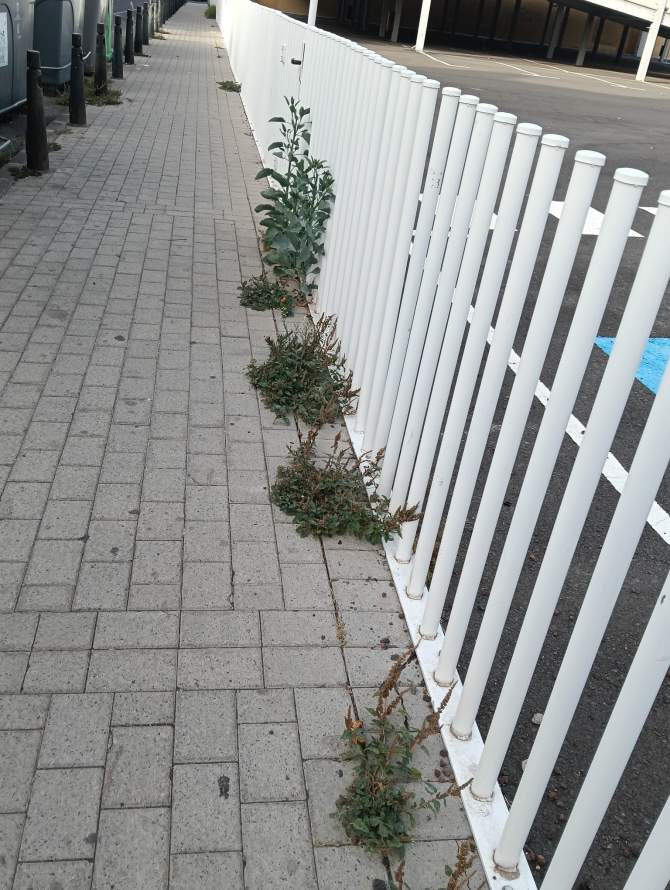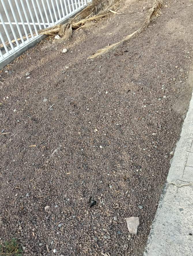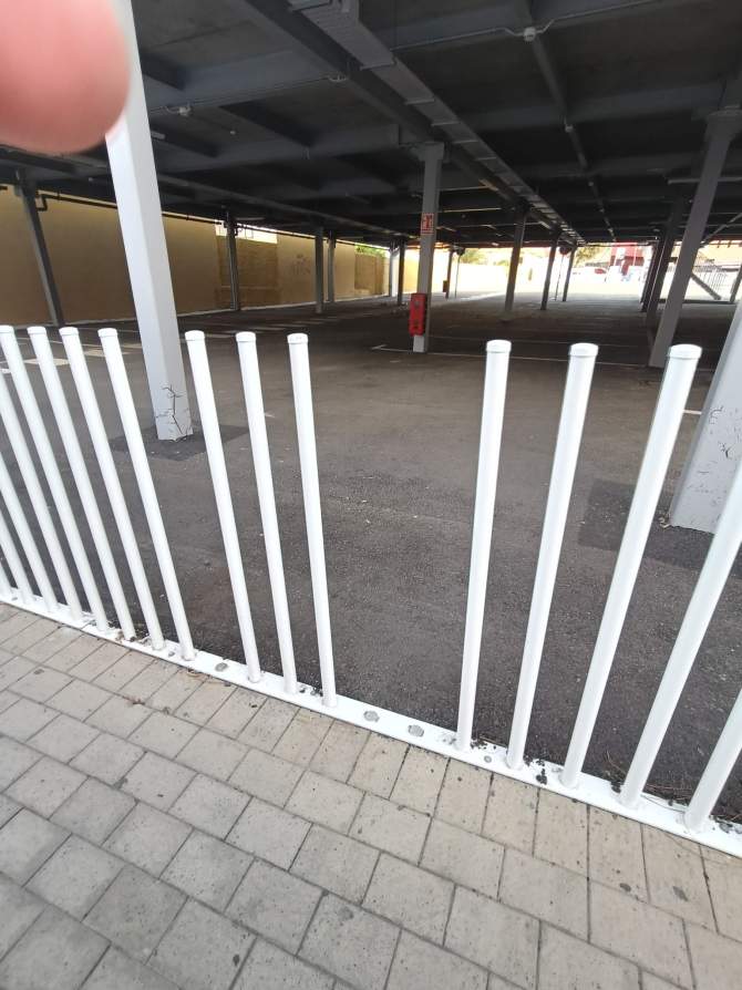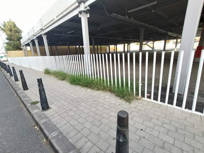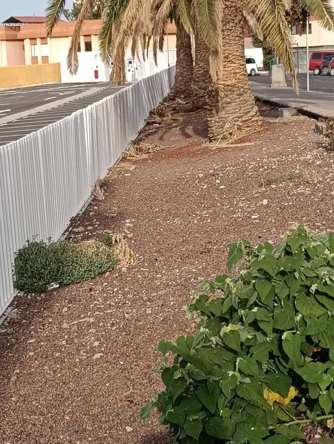 En la calle Roque se ven las vallas rotas, la hierba creciendo encima de ellas y en la parte superior, el muro de hormigón que se ha convertido en el posadero de las palomas que se alimentan de la panadería. Cabe decir que el muro está lleno de excrementos de palomas, lo que supone un foco de infección para los vecinos y el alumnado que acude a los tres colegios que hay en la zona.