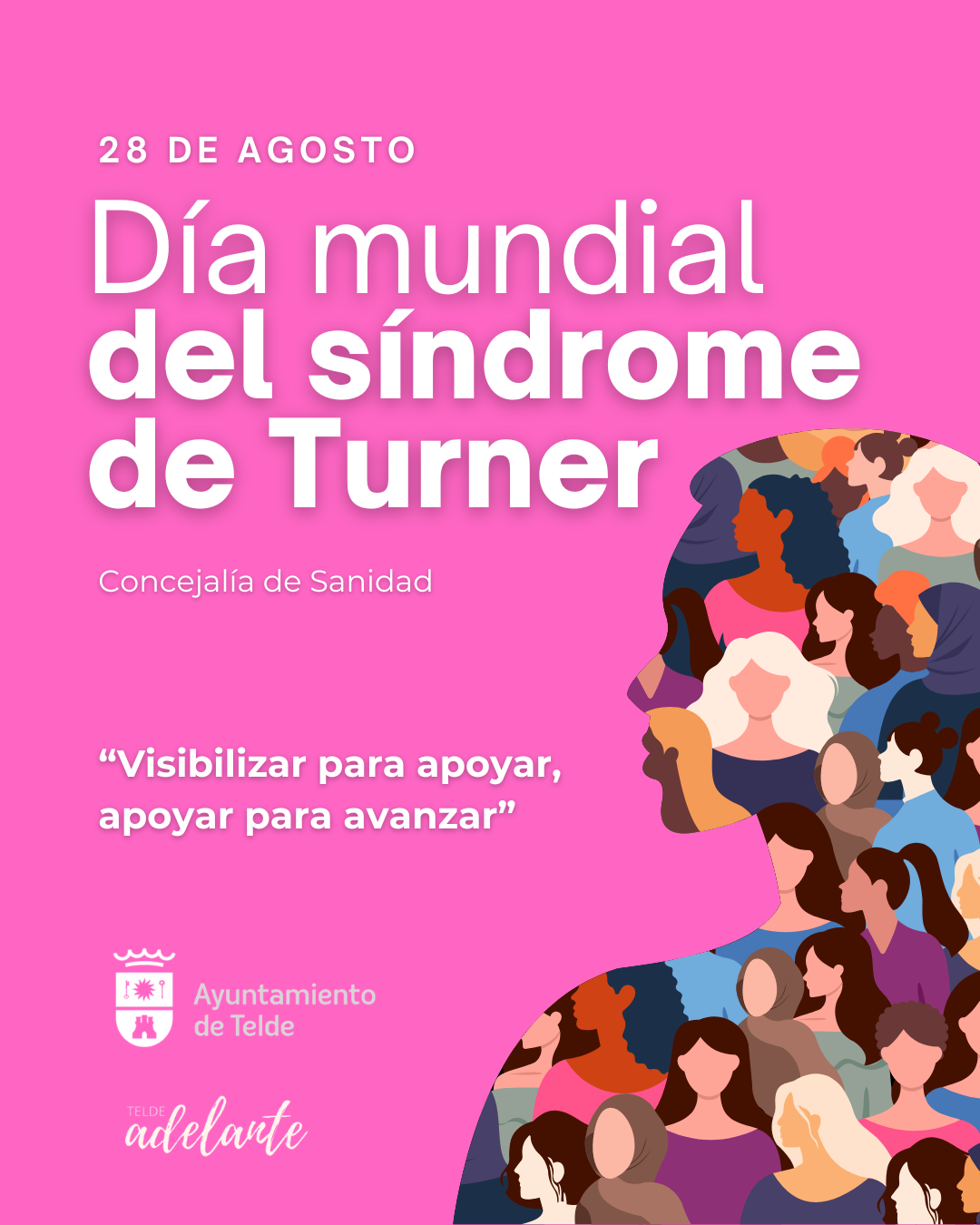 Juan Antonio Peña, alcalde de Telde, asegura que “teñiremos el edificio institucional y las redes sociales oficiales de rosa para recordar a las mujeres con Síndrome de Turner y sus familias que no están solas. Las puertas del ayuntamiento están abiertas para ellos también”.