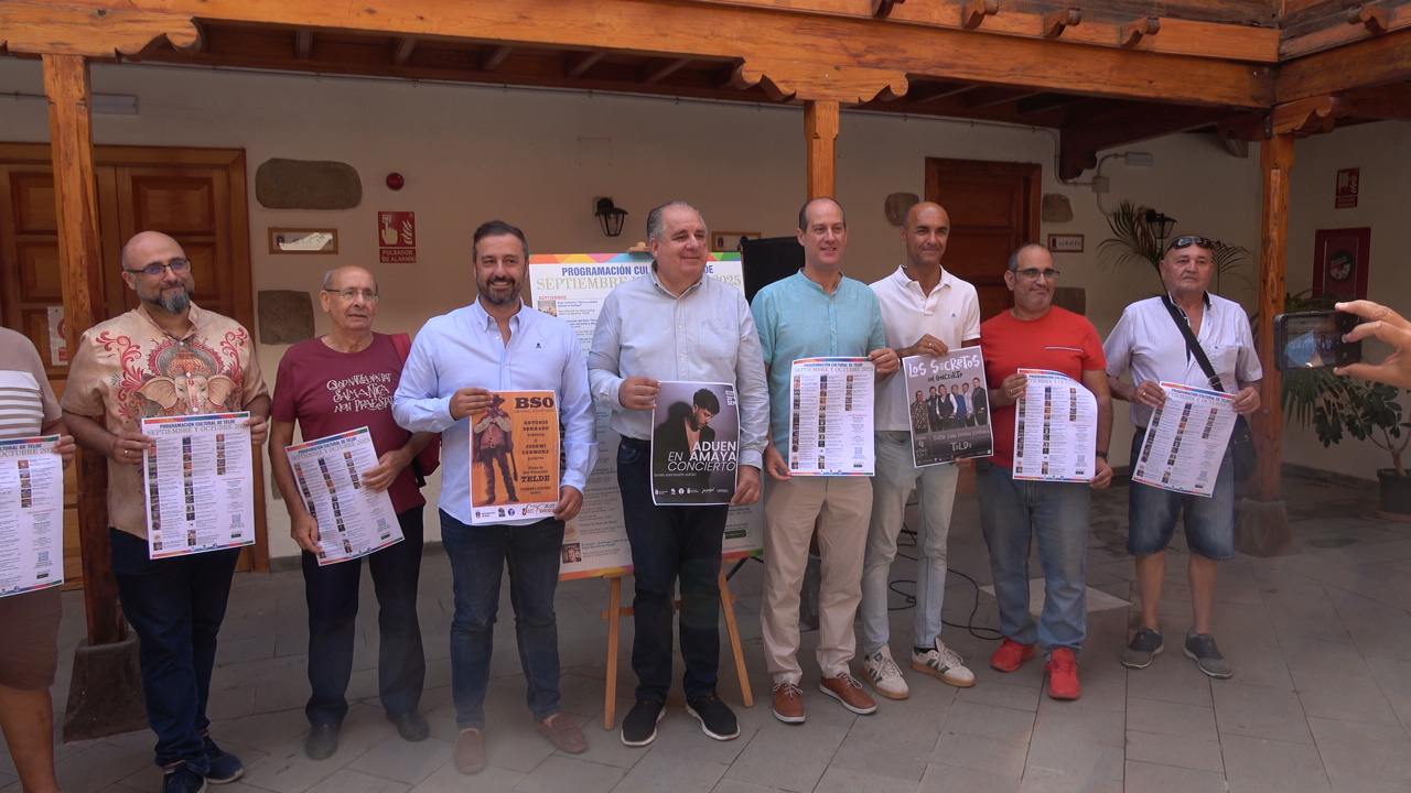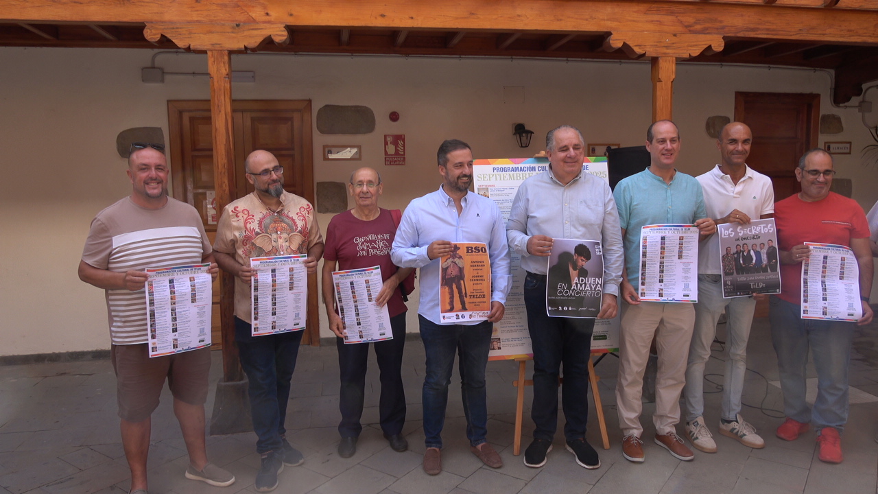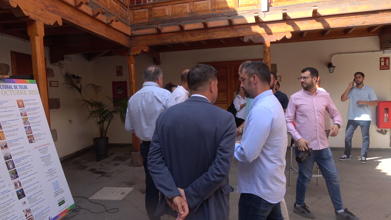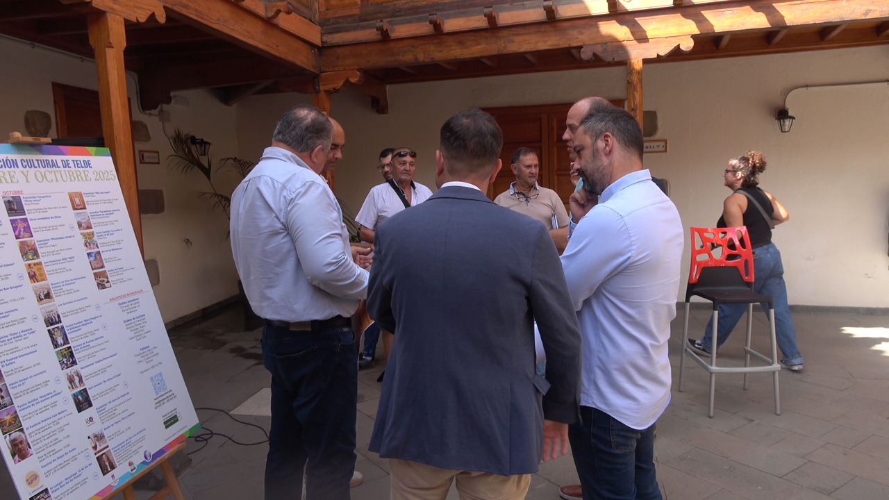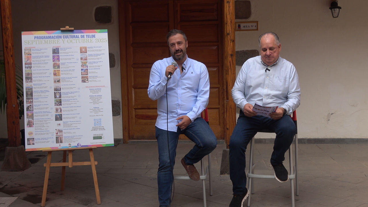 El Ayuntamiento de Telde presentó este jueves 28 de agosto, a las 11.00 horas, la programación cultural de septiembre y octubre de 2025, en un acto celebrado en el patio de la Escuela de Música de San Juan. El encuentro estuvo presidido por el alcalde Juan Antonio Peña, acompañado por el concejal de Cultura, Juan Martel.