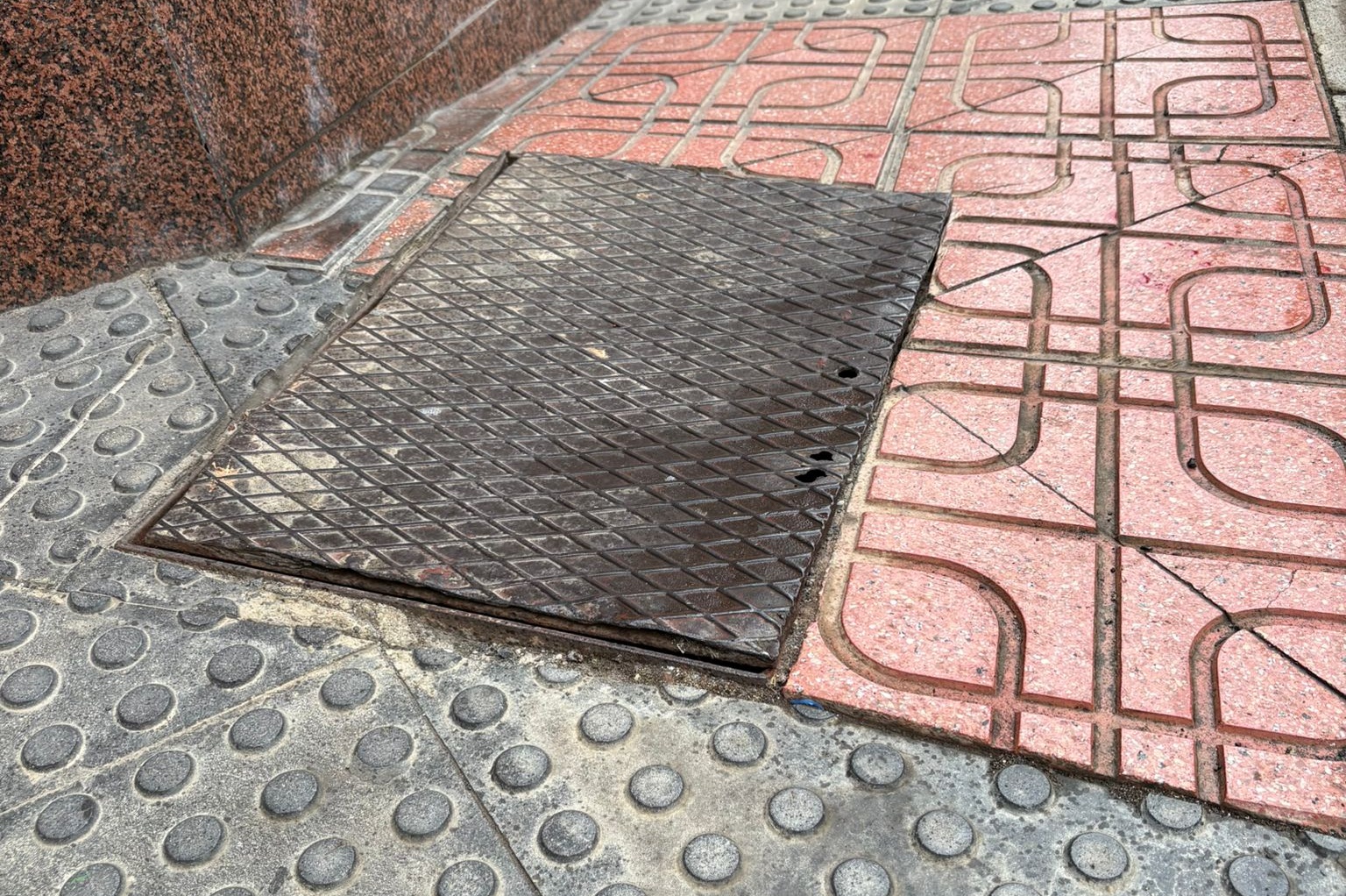 Vecinos de San Gregorio levantan la voz por el "mal estado" de una tapa de registro situada en el inicio de la calle Reyes Católicos. La pieza, levantada y rodeada de baldosas agrietadas, constituye un riesgo para los peatones que transitan por la acera.