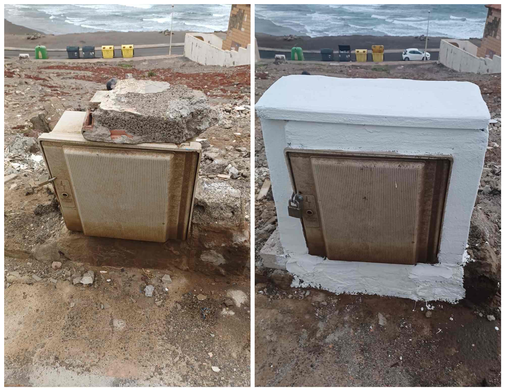 La caja de suministro eléctrico situada en la calle Góngora, en Playa del Hombre, ha sido reparada en menos de una semana después de que TELDEACTUALIDAD publicara la denuncia sobre el grave riesgo que suponía su estado de deterioro.