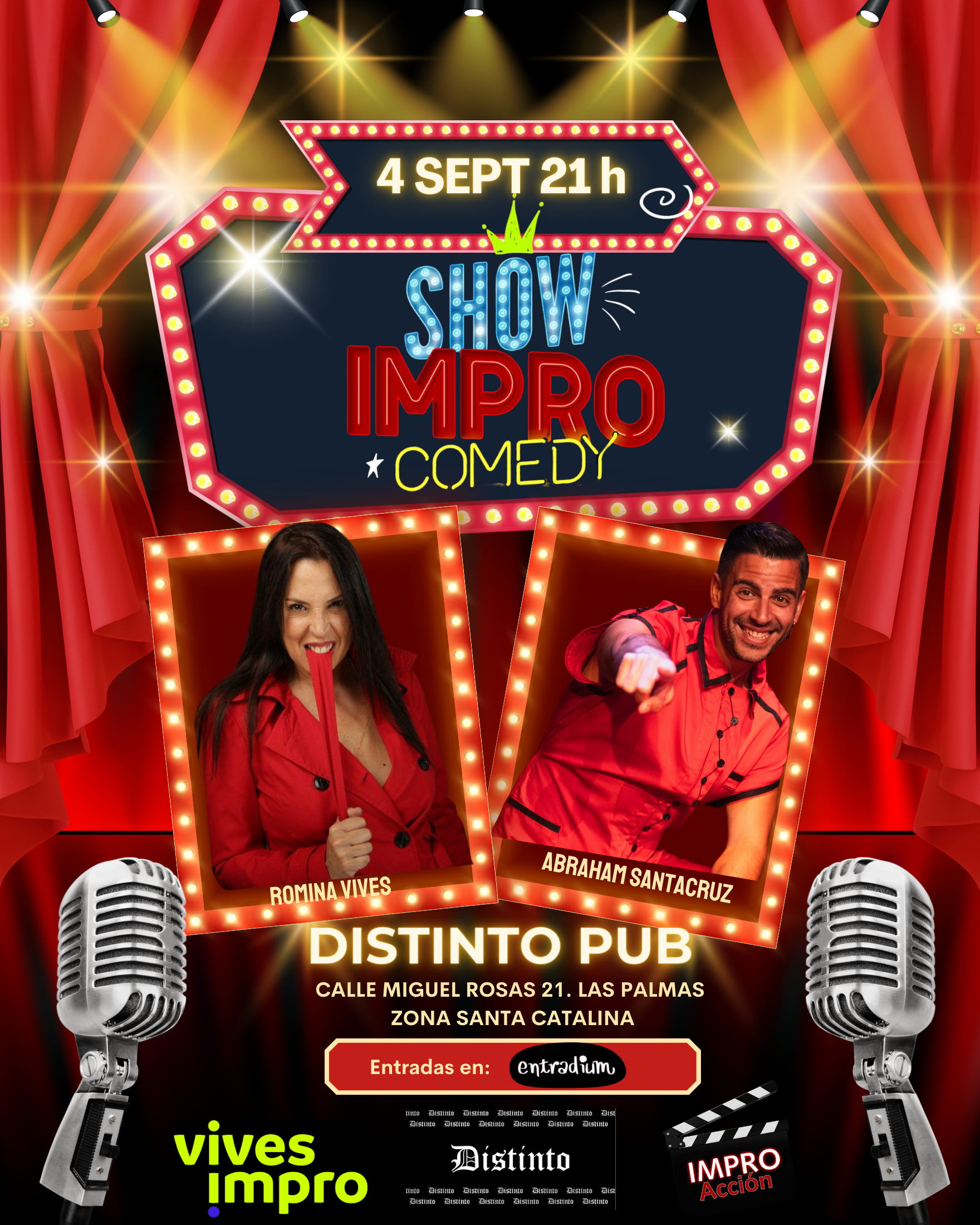 Show Impro Comedy es el nombre de este espectáculo fresco y dinámico que llenará el escenario del Distinto Pub, en la calle Miguel Rosas, de risas, ingenio y diversión.