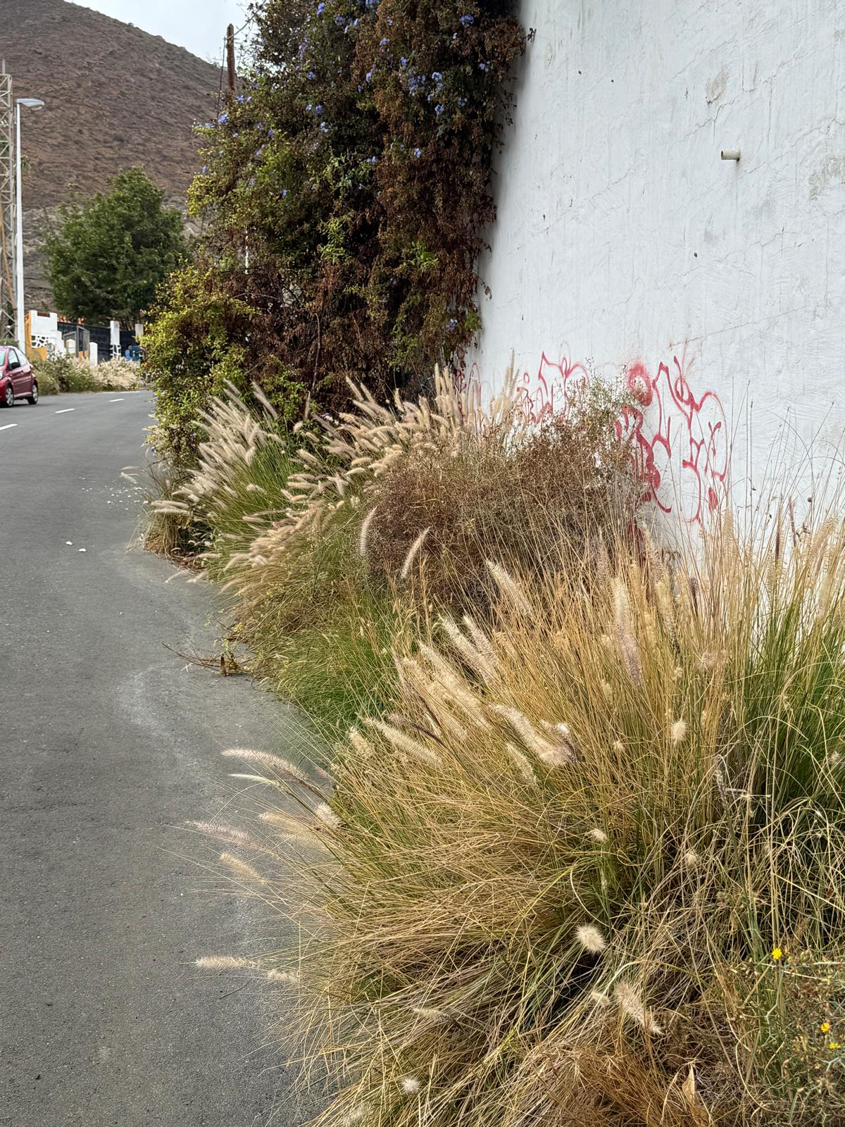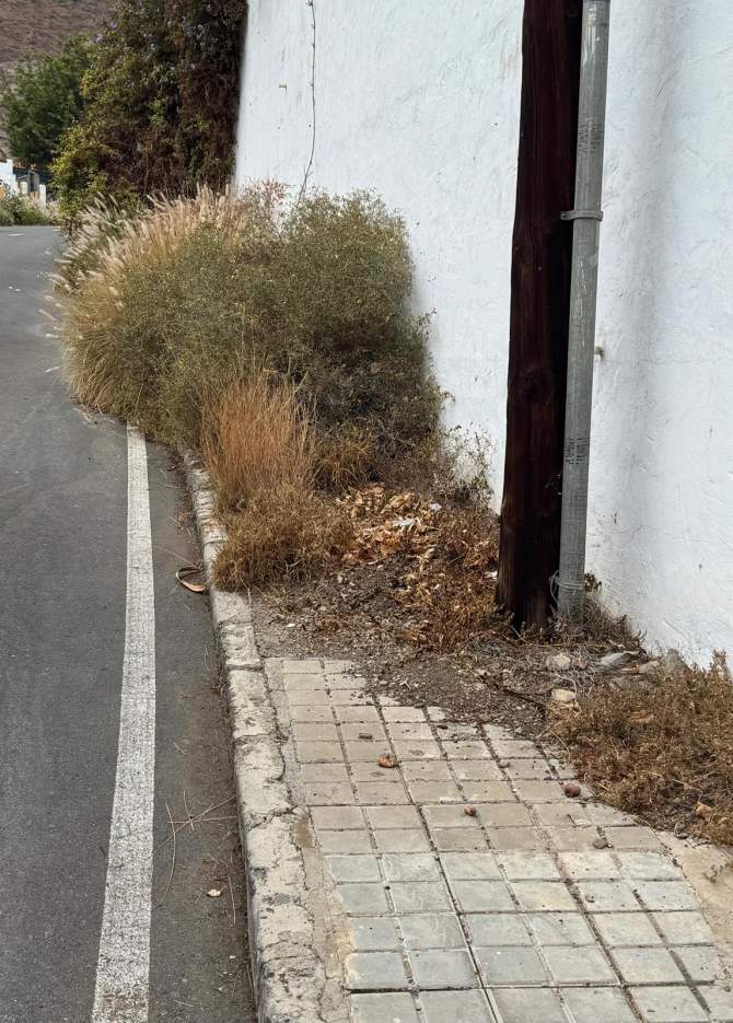 "Ni los coches pueden ya circular por la vía sin peligro ni los peatones por la acera, pues las plantas y malas hierbas se han adueñado de las aceras y de un carril de la calle sin que el Ayuntamiento de Telde haga nada. Se denunció en sede electrónica hace un mes", lamenta un vecino que pide mayor atención para esta calle del municipio.
