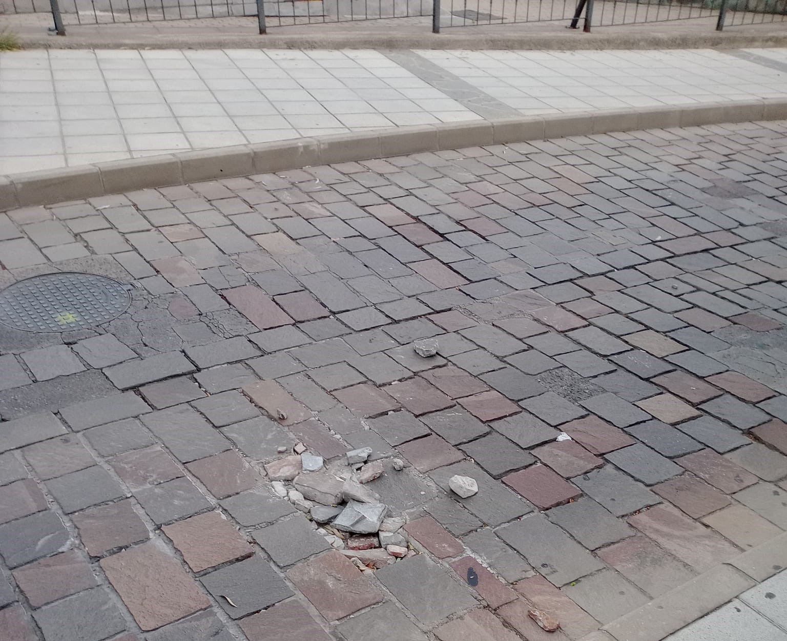 Las imágenes muestran adoquines levantados y huecos en el firme, una situación que, según denuncian, no es nueva y que se ha ido agravando con el paso del tiempo sin que se realicen reparaciones. “Me acaba de saltar una piedra al paso de un coche. ¿Cuándo piensan reparar esto?”, se preguntan los afectados.