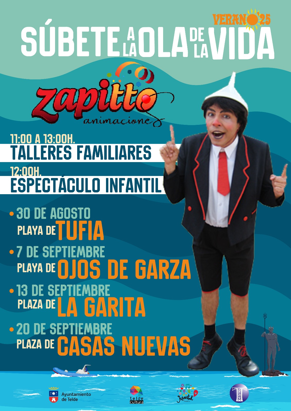 Actuación infantil en la plaza de La Garita con Zappito a partir de las 12.00 horas y talleres infantiles de 11.00 a 13.00 horas.
