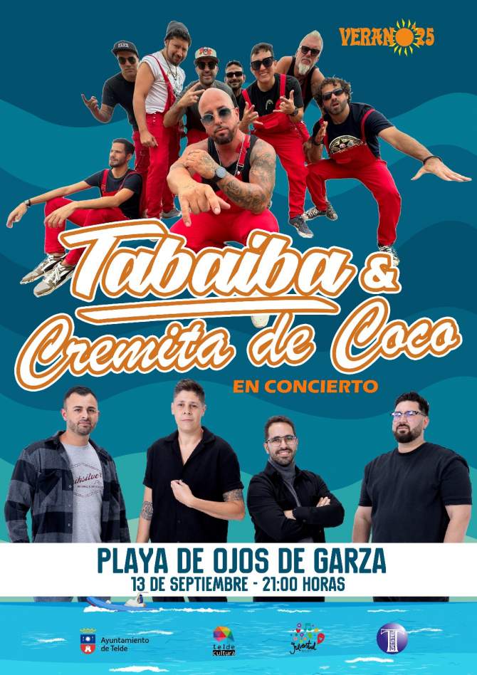 Concierto de Tabaiba y Cremita de Coco en la playa de Ojos de Garza a partir de las 21.00 horas.