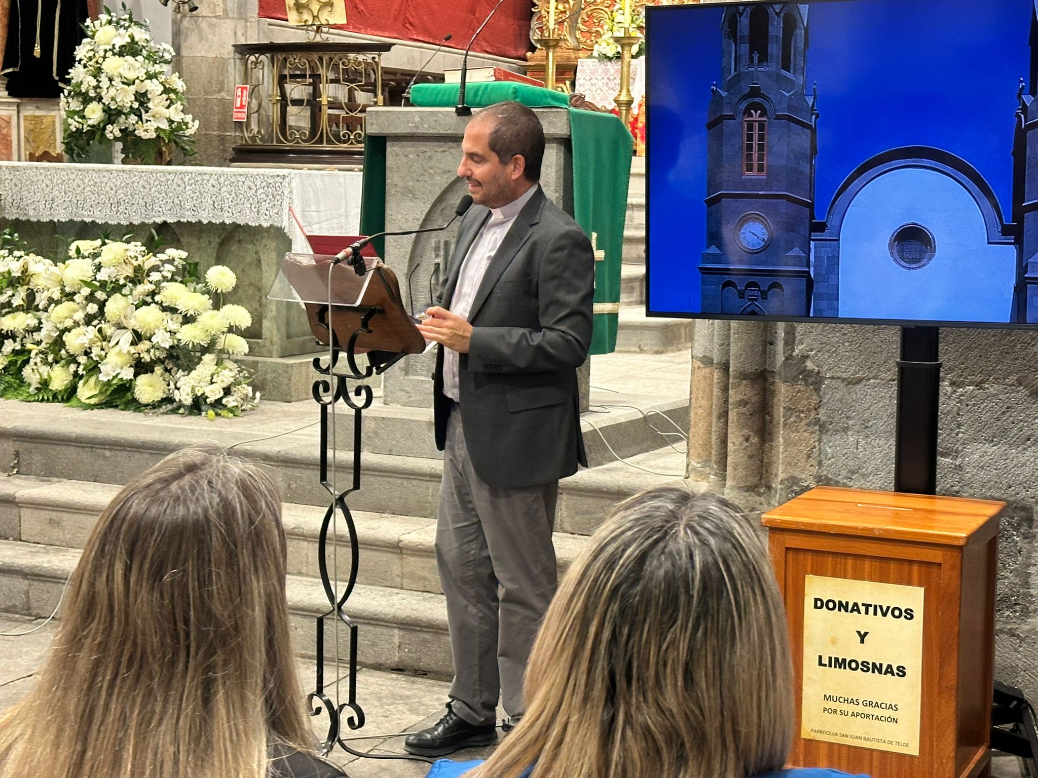 Medina, de 50 años, repasó sus orígenes en el barrio de San Juan, su paso por el colegio Poeta Fernando González y su trayectoria académica y profesional, hoy ligada al servicio público en el Ayuntamiento de Telde a través del Cabildo de Gran Canaria. Pero sobre todo, reivindicó su identidad como vecino comprometido con la vida parroquial desde 1991, año en el que comenzó a participar en las ceremonias de la Bajada y Subida del Santo Cristo del Altar Mayor.