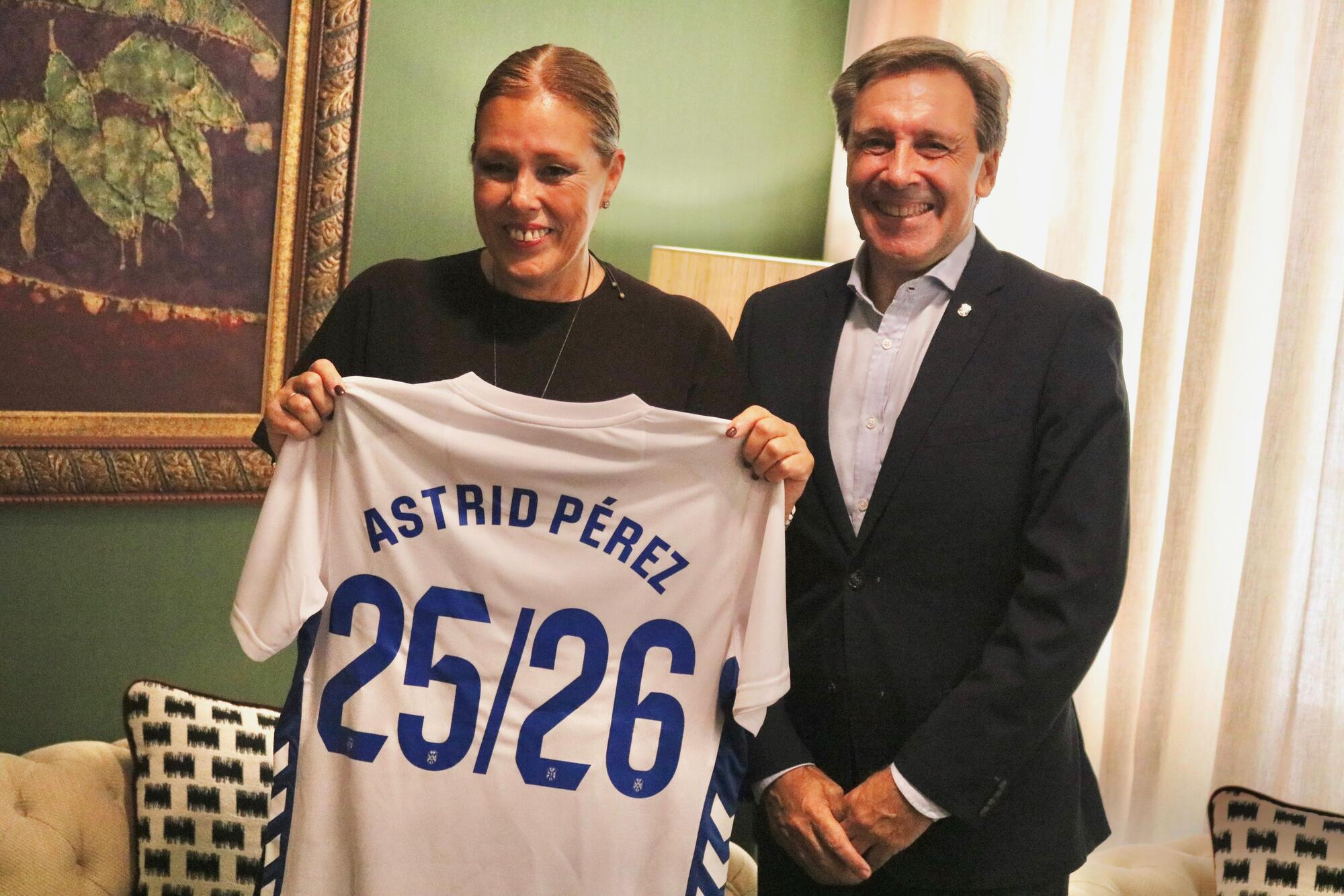 La presidenta del Parlamento de Canarias, Astrid Pérez, recibió este jueves en la sede de la Cámara al presidente del Club Deportivo Tenerife, Felipe Miñambres, acompañado por la consejera de la entidad, Sheila Trujillo.