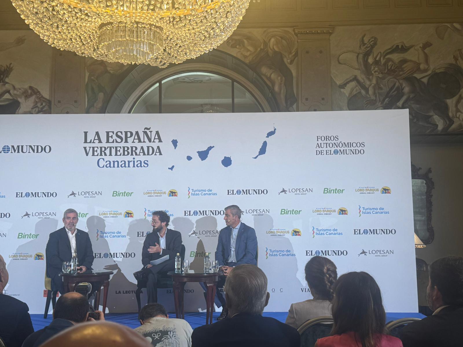 El foro se cerró con un diálogo en el que participaron el presidente de Canarias, Fernando Clavijo, el vicepresidente y consejero de Economía, Industria, Comercio y Autónomos, Manuel Domínguez y el director de El Mundo, Joaquín Manso.