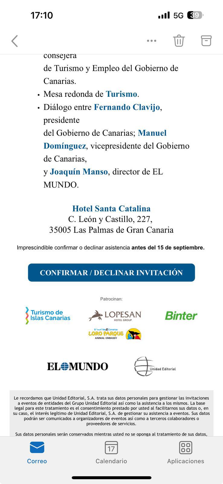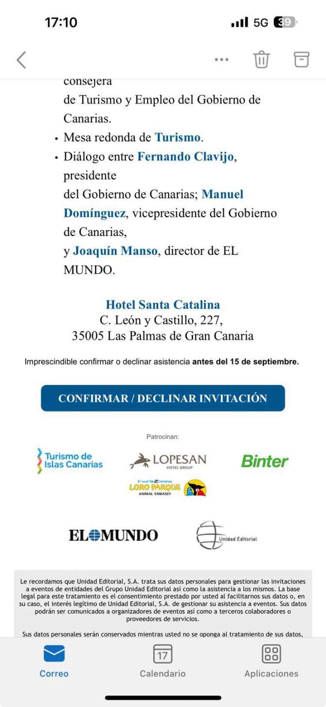 La vicealdesa de Telde, María González Calderín (PP), y la concejala María Desirée Hernández Martín (Cuca), concejala de Economía y Hacienda,, asistieron este jueves al Foro La España vertebrada. Un evento organizado por el periódico El Mundo y que se desarrolló en el Hotel Santa Catalina de Las Palmas de Gran Canaria.