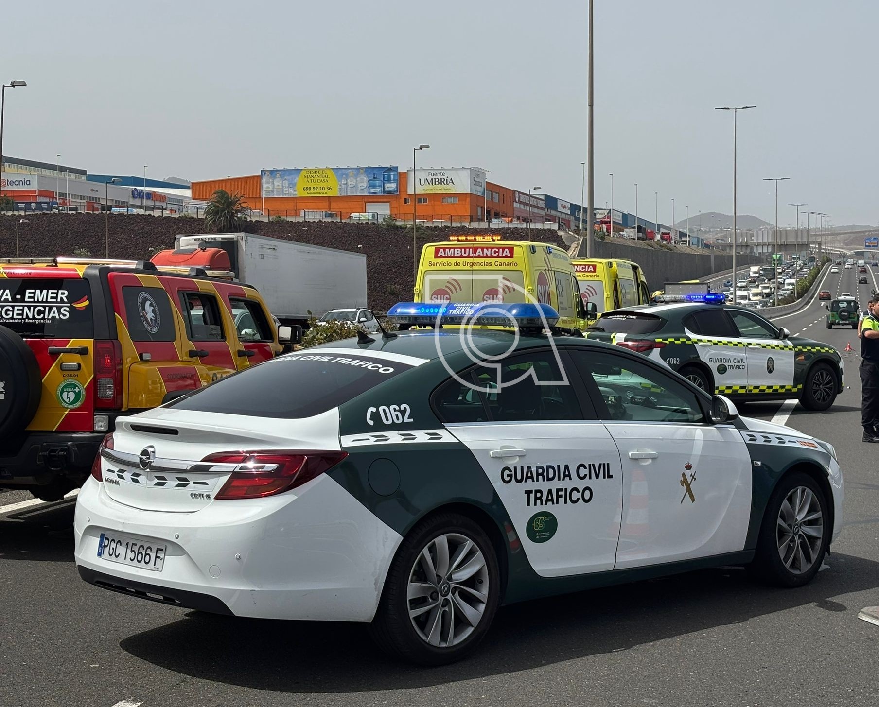 Según las primeras informaciones, varios vehículos se han visto implicados en la colisión, lo que ha generado un colapso total del tráfico en esta zona de la principal arteria viaria de la Isla.