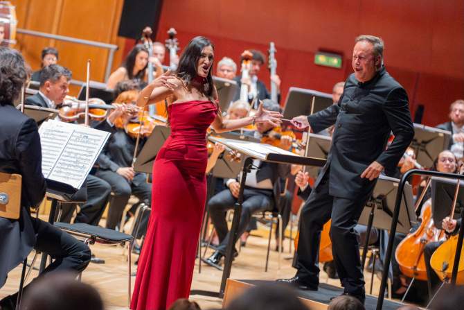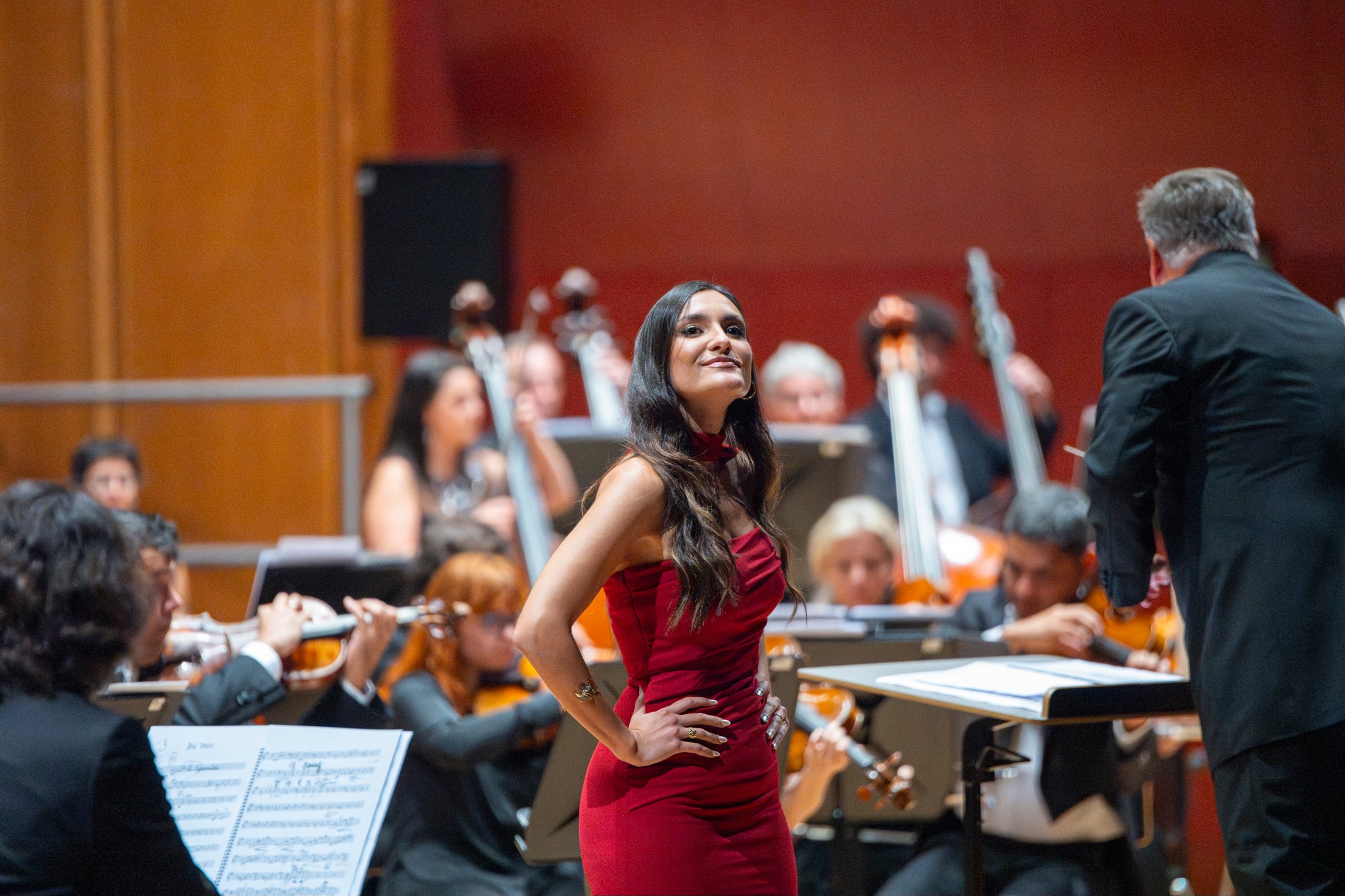 La mezzosoprano se convirtió en protagonista al ser solista en la interpretación de dos arias de la ópera Carmen, dentro del programa titulado En torno a Carmen, que conmemoró el 150 aniversario del estreno de la célebre obra de Bizet. Su voz, cargada de fuerza y matices, recibió ovaciones del público, que premió su actuación con prolongados aplausos.