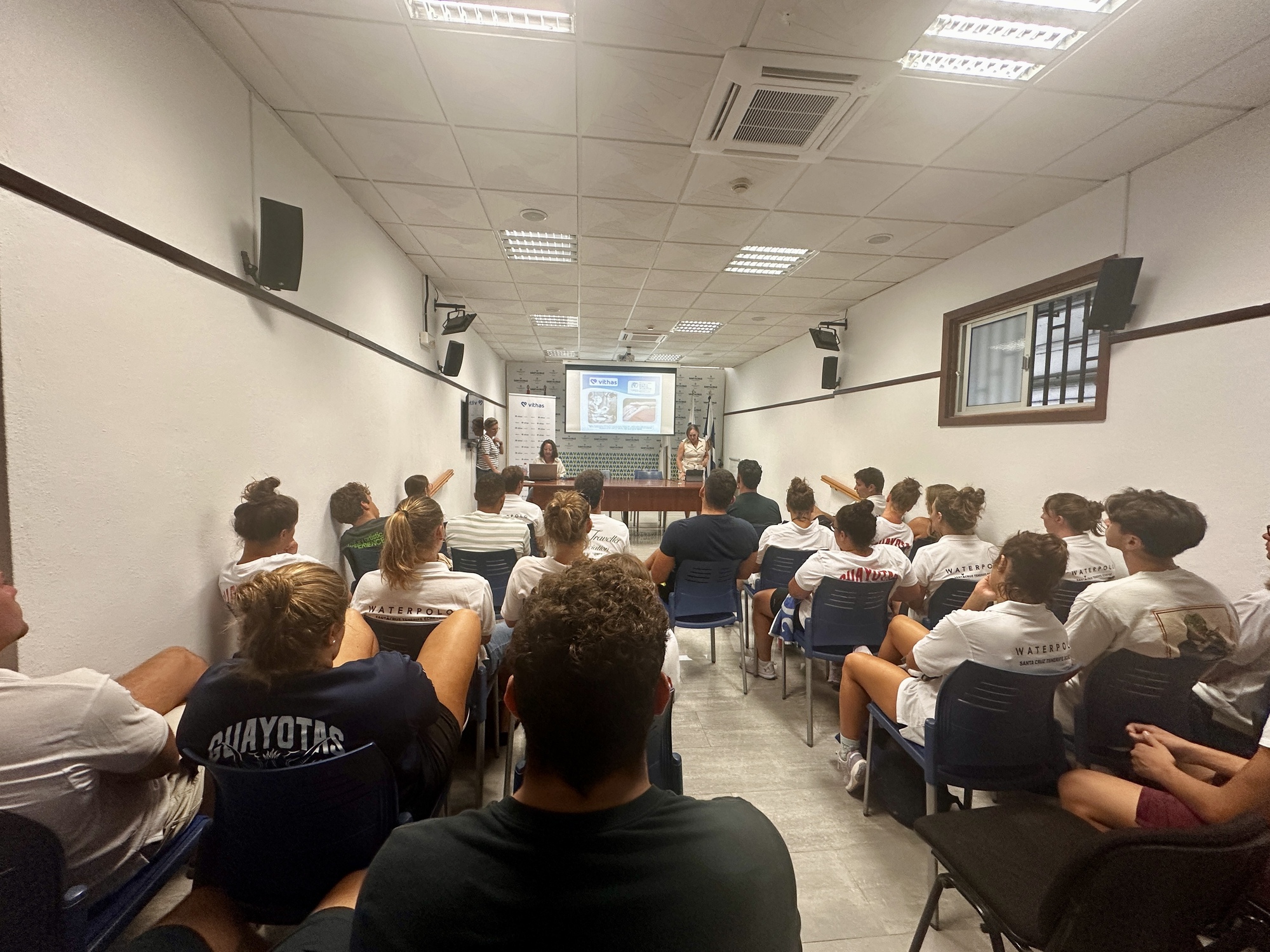 Ofrecer las claves para favorecer la práctica deportiva con todas las garantías, de forma que se realice sin riesgos para la salud y obteniendo el mejor rendimiento posible. Con este objetivo, Vithas Canarias, en colaboración con la Consejería de Educación, Formación Profesional, Actividad Física y Deportes del Gobierno de Canarias, ha celebrado una jornada formativa a casi medio centenar de deportistas y entrenadores del Santa Cruz de Tenerife Echeyde Waterpolo.