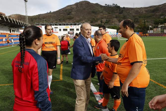 El acto de presentación contó con la presencia del vicepresidente de SPAR Gran Canaria, José López; el director general de SPAR ARADASA, Alejandro Fleitas, y el presidente del CF Panadería Pulido Vega de San Mateo, Francisco Rodríguez Pulido. También asistieron por parte del Ayuntamiento la concejala de Servicios Sociales, Elena Santana, y el concejal de Deportes, Miguel Reyes.