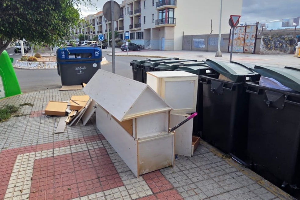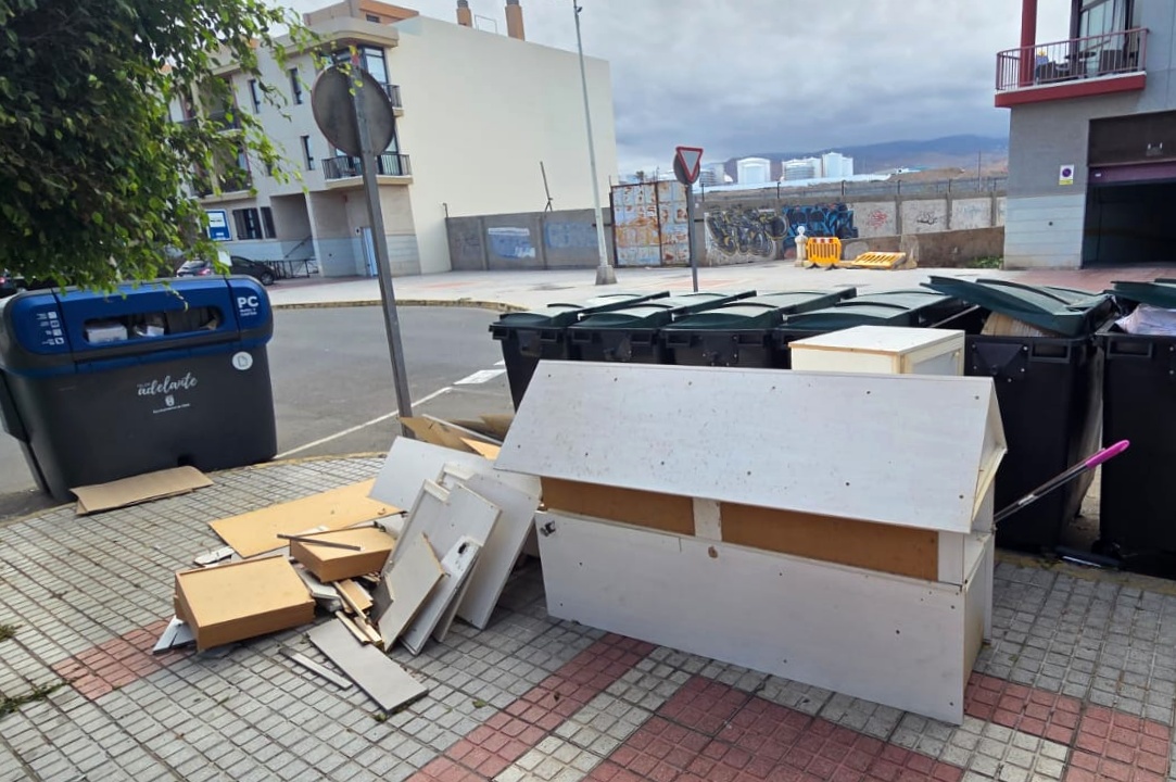 Según denuncian los vecinos, los objetos fueron depositados en la vía pública durante la noche del miércoles, coincidiendo con la jornada en la que el Ayuntamiento de Telde tiene establecido el servicio de recogida de enseres.