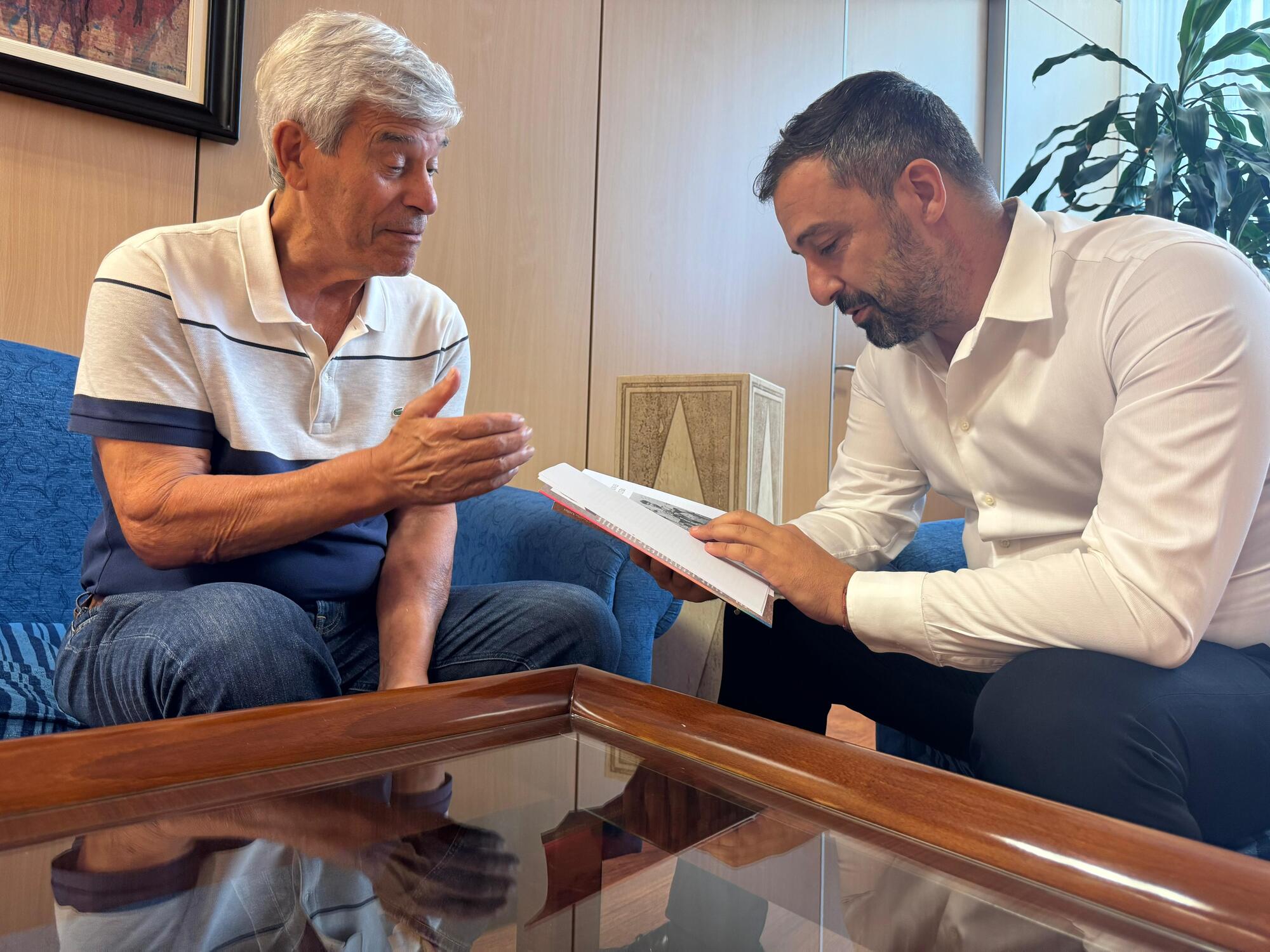 El alcalde de Telde, Juan Antonio Peña, recibió recientemente en las dependencias municipales a José Trujillo para conocer su nueva obra Desde el terrero, con memoria y dignidad. El libro narra, desde una perspectiva íntima y cercana, la vida de su hermano, Manuel Trujillo, conocido como Pollo de la Barranquera I, fiel defensor y mito de la lucha canaria.