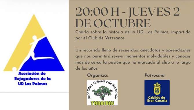 Mientras que el jueves día 2 de octubre, a las 20.00 horas, tendrá lugar una charla sobre la historia de la Unión Deportiva Las Palmas por parte de la Asociación de Exjugadores del club amarillo. “Un recorrido lleno de recuerdos, anécdotas y aprendizajes que nos permitirá revivir momentos inolvidables y conocer más de cerca la pasión que ha marcado al club a lo largo de los años”.