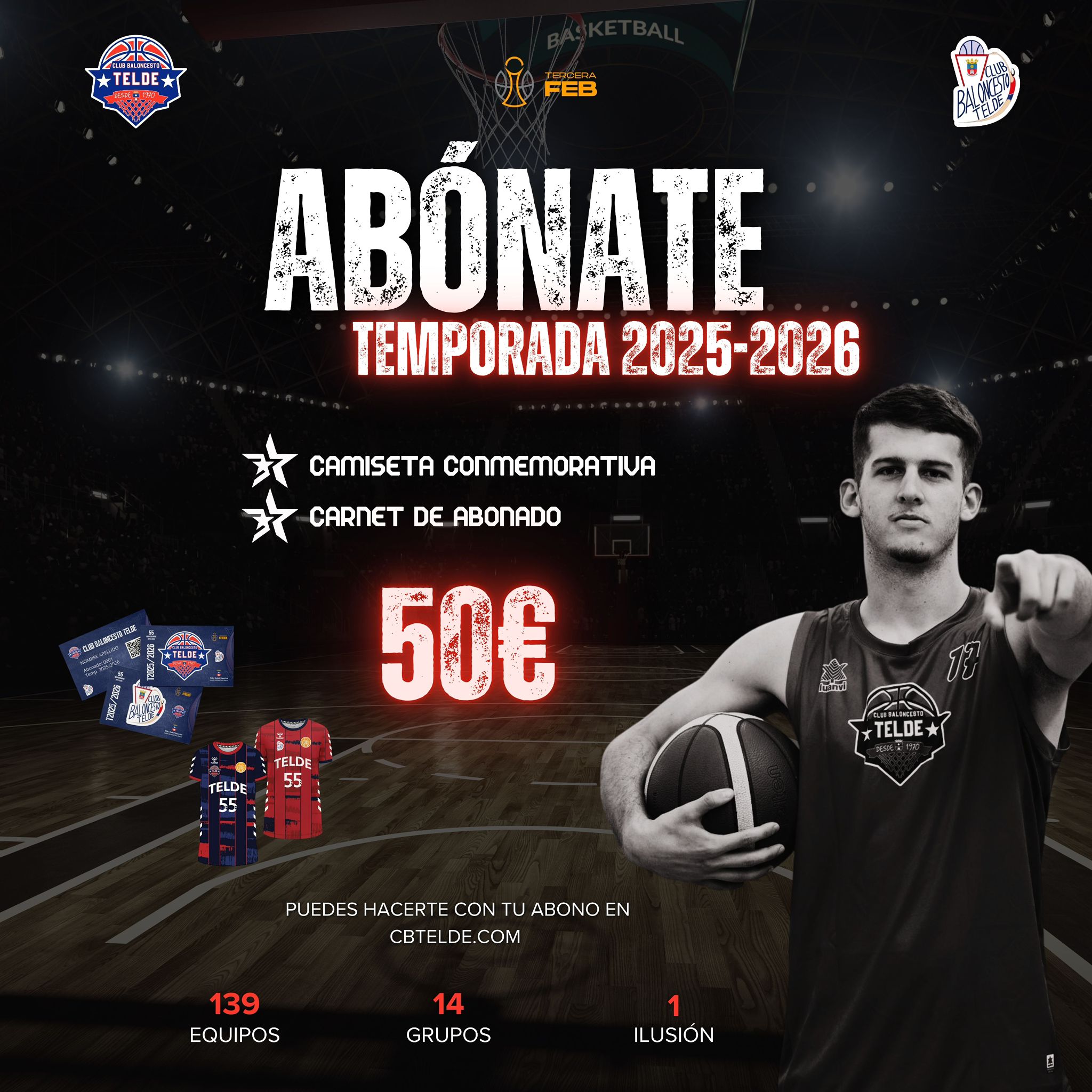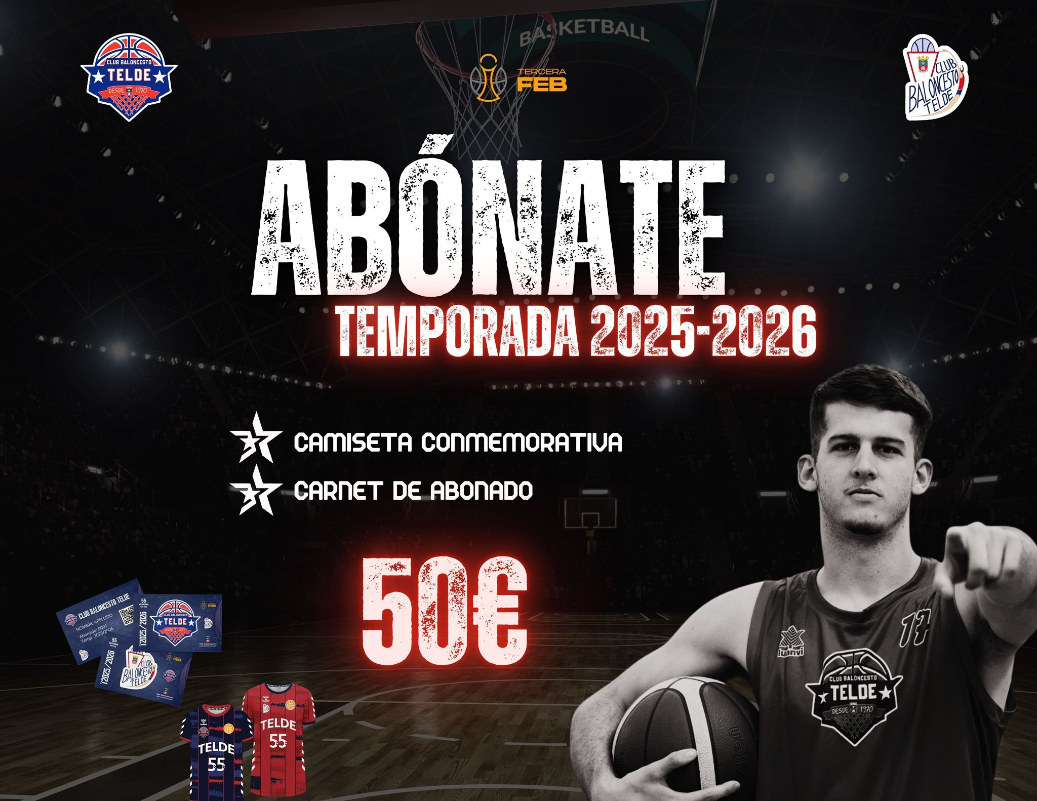 El Club Baloncesto Telde ha puesto en marcha su campaña de abonados para la temporada 2025-2026 en la que debuta Tercera FEB, cuarta categoría nacional en jerarquía. El precio del abono es de 50 euros e incluye una camiseta conmemorativa y el carnet de abonado.