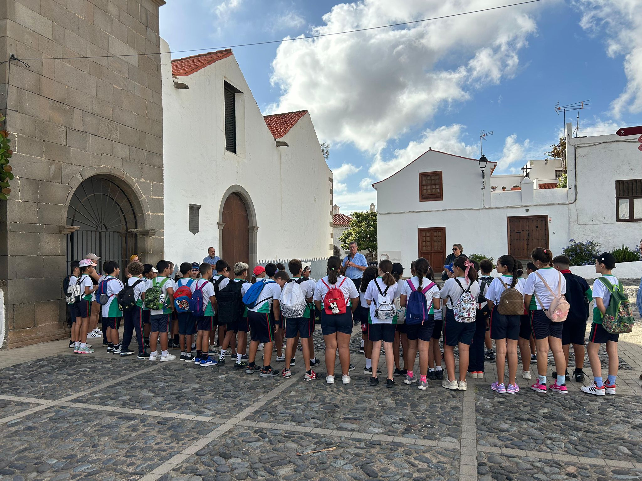 Decenas de escolares participan en el Recorrido Histórico-Artístico-Literario, una actividad organizada con motivo de las fiestas patronales de San Francisco por la Concejalía de Cultura y Patrimonio Histórico del Ayuntamiento de Telde, dirigida por Juan Martel, que busca acercar la historia y la cultura a los más jóvenes de una forma cercana y emocionante.