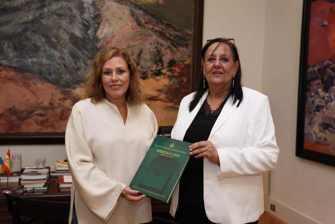 La presidenta del Parlamento de Canarias, Astrid Pérez, mantuvo una reunión este jueves con la Diputada del Común, Lola Padrón, para analizar las principales líneas de trabajo y necesidades de la institución para el 2026.