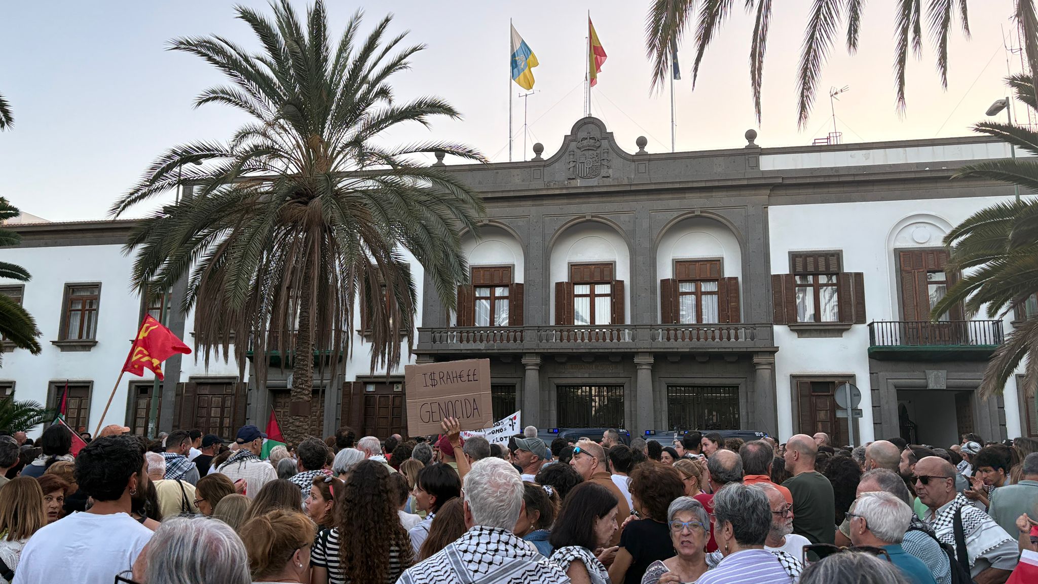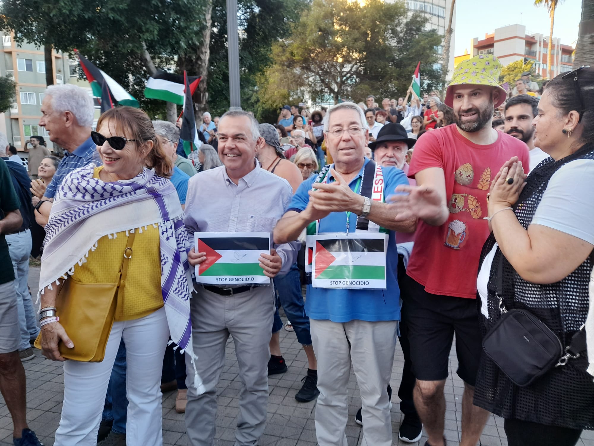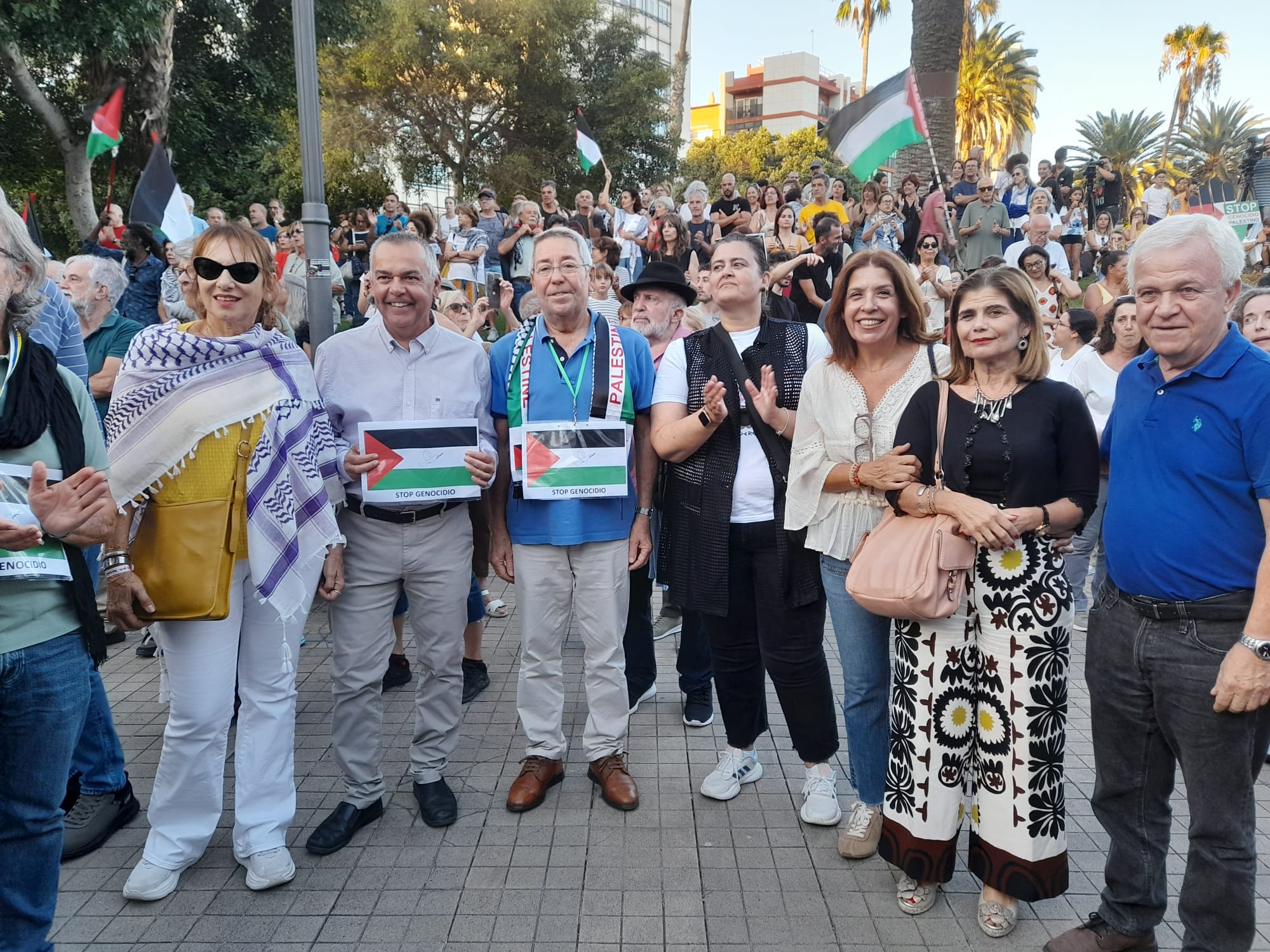 La protesta comenzó a las 19.00 horas y reunió a colectivos sociales, asociaciones ciudadanas y representantes políticos, entre ellos una delegación de Nueva Canarias de Telde, que se sumaron a las voces que exigieron la liberación inmediata de la Flotilla, el embargo de armas a Israel y la suspensión de relaciones diplomáticas con el Gobierno de Netanyahu.Entre los concetrados se encontraban la diputada regional y exalcaldesa de Telde, Carmen Hernández: los ediles Celeste López y Álvaro Monzón: y el exalcalde de la ciudad, Francisco Santiago.