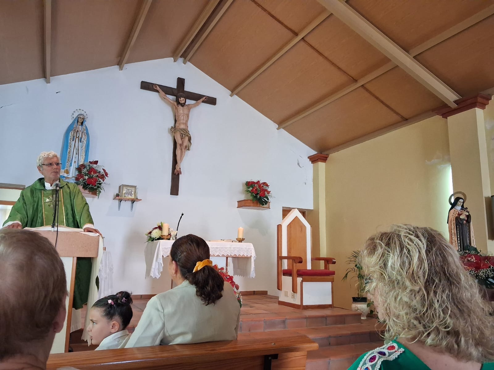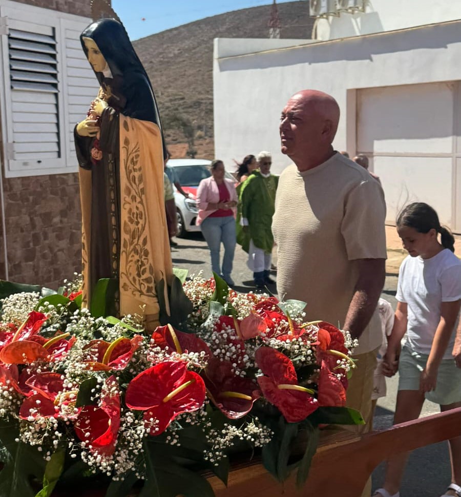 El templo, sencillo y luminoso, acogió a los fieles que se acercaron para rendir tributo a la santa de la ternura y la entrega. La misa fue presidida en un ambiente recogido, cargado de emoción, donde la fe se entrelazó con la memoria de quienes levantaron este enclave rural sobre un territorio que guarda vestigios prehispánicos de la antigua Telde.