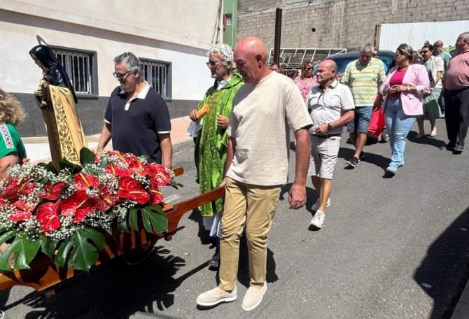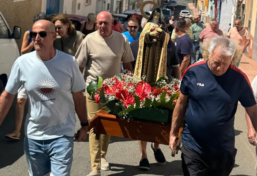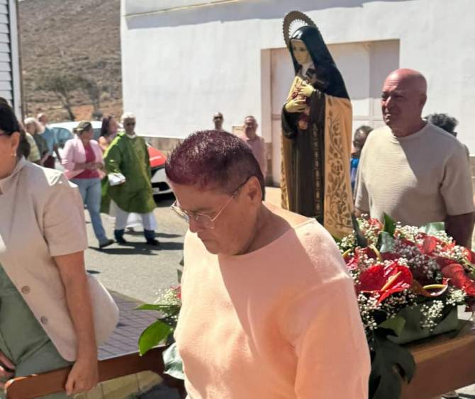 Tras la celebración religiosa, la imagen de Santa Teresita salió al encuentro del aire y la tierra, llevada en procesión entre rezos y aplausos. El cortejo avanzó despacio, al ritmo de los fieles, bajo la mirada serena de los riscos que enmarcan el paisaje.