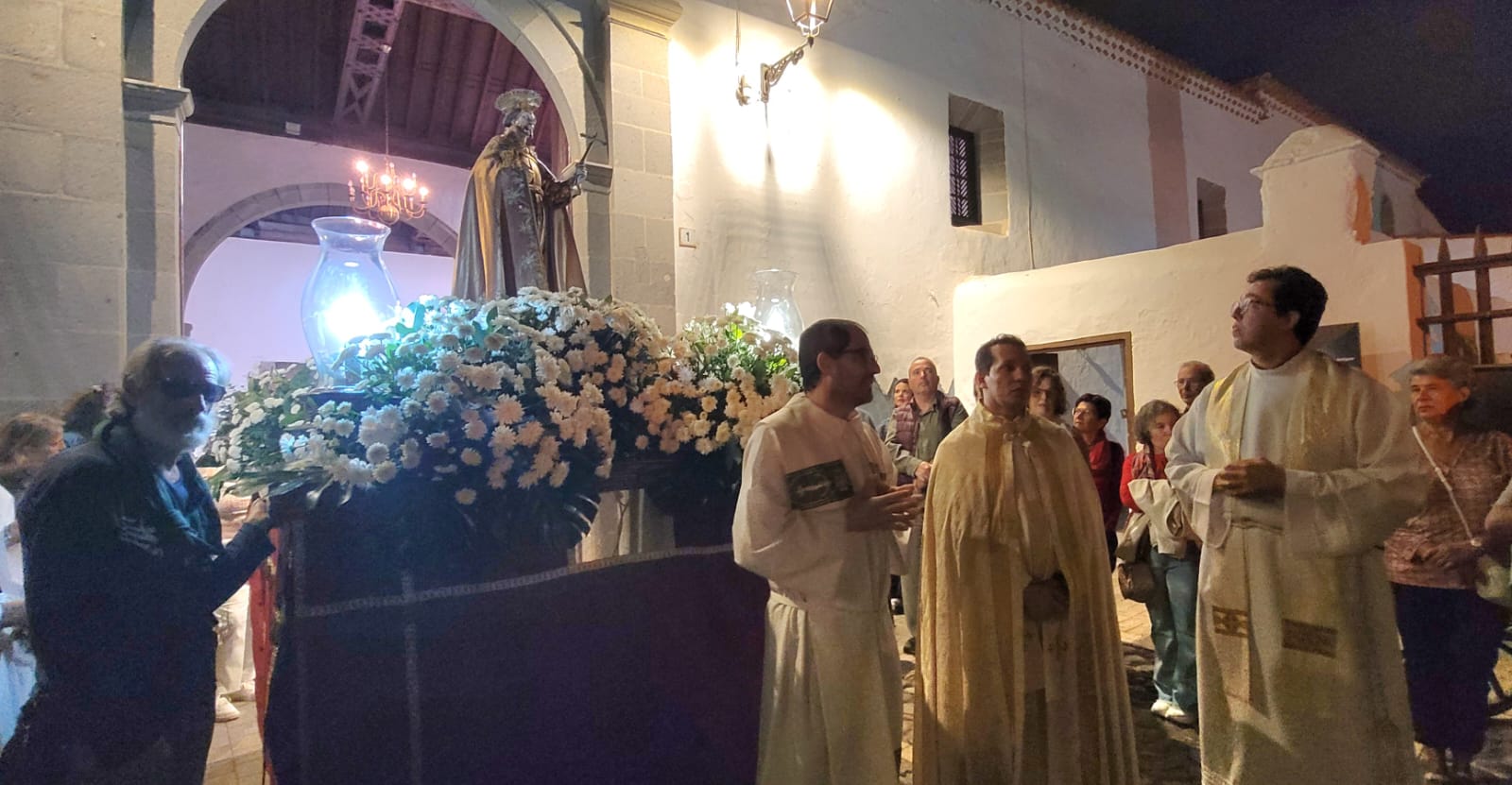 Finalizada la misa se inicia la procesión con la salida del templo de la imagen de San Francisco bellamente engalanada formándose la comitiva procesional dirigiendo sus pasos y oraciones sin apartar las miradas de su Santísimo Cristo con las del de Asís, para llegar a su habitual lugar en la iglesia conventual de su nombre e histórico barrio, San Francisco, joya urbana testimonio de una época e historia que hoy sigue escribiendo y sintiendo desde lo más hondo de los corazones su memoria legada como bien destacó el pregonero de este año 2025, Antonio Santana Rivero, en su pregón que abrió las fiestas.